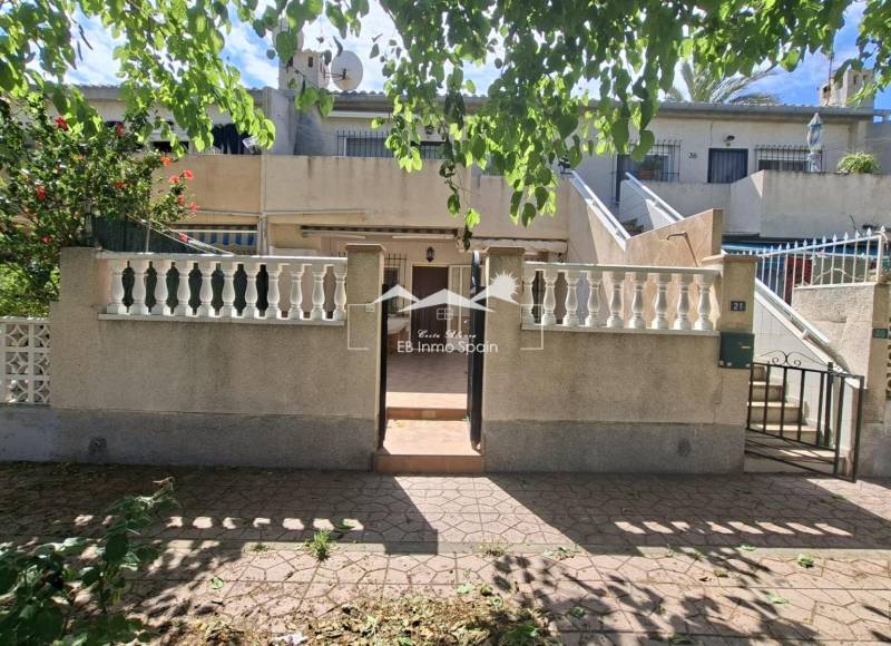 Lomas de Cabo Roig, Residencial Playa golf III, Ground floor corner bungalow with a 180 m2 plot with a barbecue area and storage room and a 71 m2 house with 2 bedrooms, bathroom, separate kitchen with gallery, living room and terrace of about 8 m2, the house is sold unfurnished, but the kitchen is sold equipped and the house has air conditioning, the residential has a beautiful communal pool.