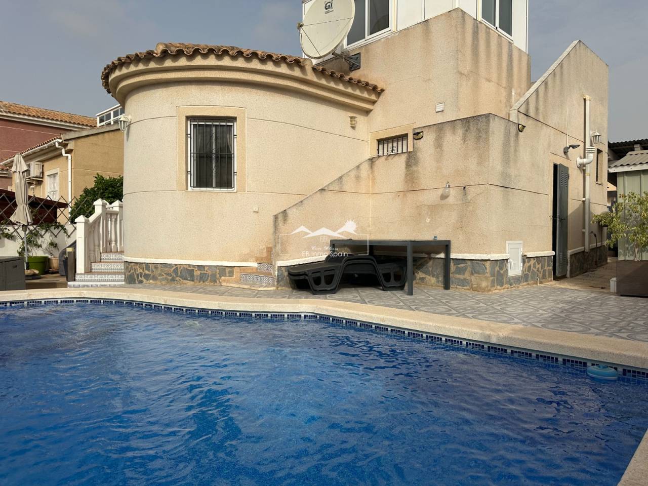 OPPORTUNITY NOT TO BE MISSED! In Pinar de Campoverde - in a quiet neighbourhood, close to shops and services - in a green setting, 20 minutes from the beaches. - 10 minutes from the small town of Pilar de la Horada, known for its charm and typical Spanish folklore - 3 km from the splendid Romero golf course DESCRIPTION - Veranda to enjoy the light in winter and summer - Living room - Fitted kitchen - 3 bedrooms - 1 bathroom - A 4th bedroom has been created on the solarium - Outdoor kitchen - Laundry room - Space to park your vehicle on site - 250m² plot with beautiful flowers - Recently renovated swimming pool - Additional outdoor WC