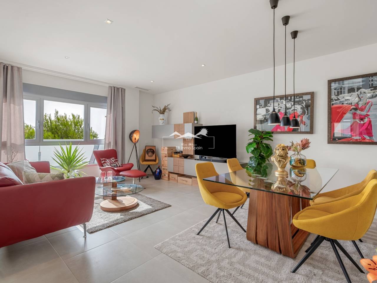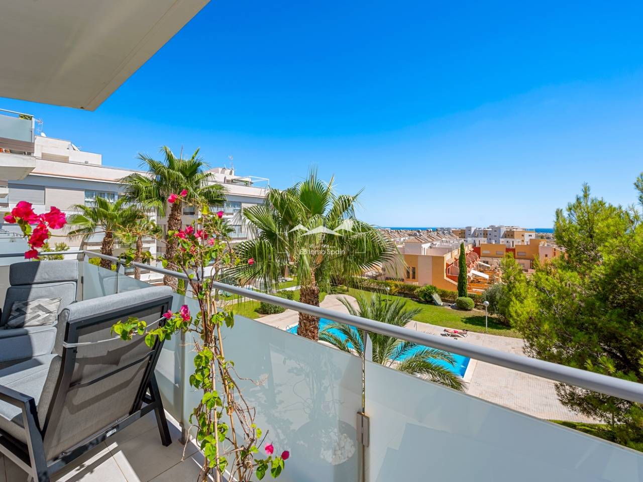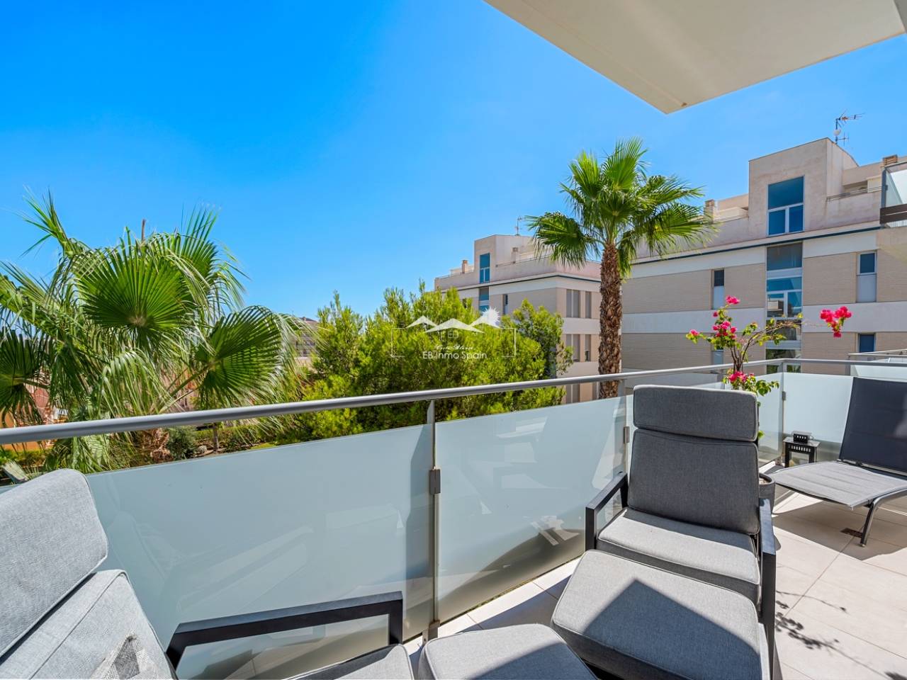 Discover this elegant 2-bedroom, 2-bathroom apartment built in 2017 and kept in excellent condition. The property is sold furnished (excluding a few personal items and artwork), offering a move-in-ready home in one of the most sought-after areas of the Costa Blanca. Enjoy a smart and practical floor plan with a bright living space extended by a glazed terrace — perfect as an additional lounge or dining area. From here, you can take in the beautiful views towards the Mediterranean Sea. The apartment is located on the third floor. Additional features include: Two storage rooms (one inside the apartment, one in the attic)Elevator in the buildingConvenient parking right outsideA well-established community with a great atmosphere Located just a short distance from cafés, restaurants, shops, beaches, and golf courses, this home offers the perfect balance between relaxation and convenience. Whether you’re looking for a holiday retreat, a permanent residence, or an investment in a rising market, this apartment is a rare opportunity. Sit back, relax, and enjoy a glass of wine with panoramic sea views from your private terrace. Community Mirador Villamartin. All appliances (including the induction hob) are in good condition. Floor heating in both bathrooms.