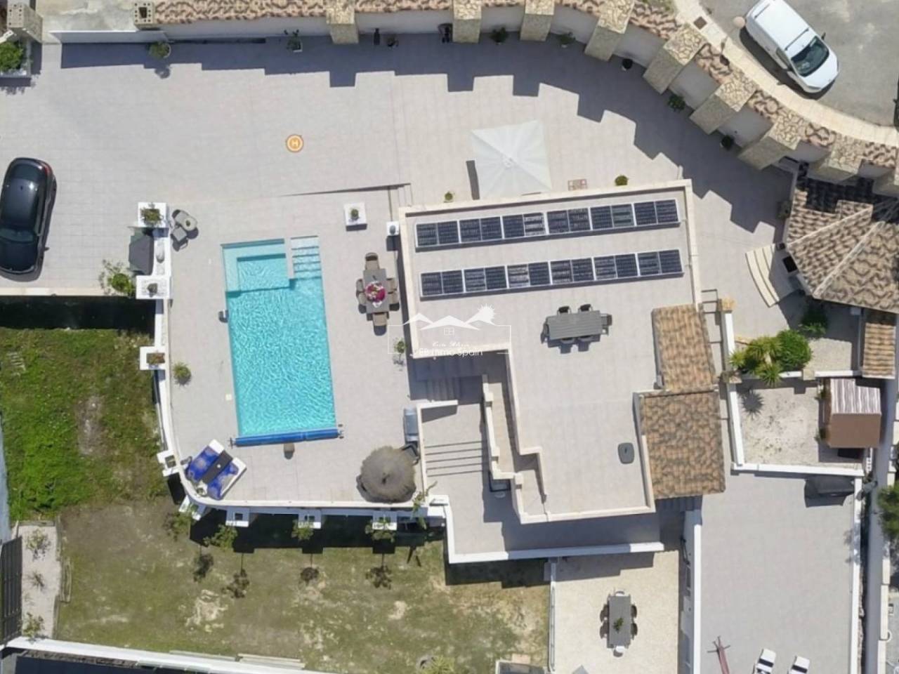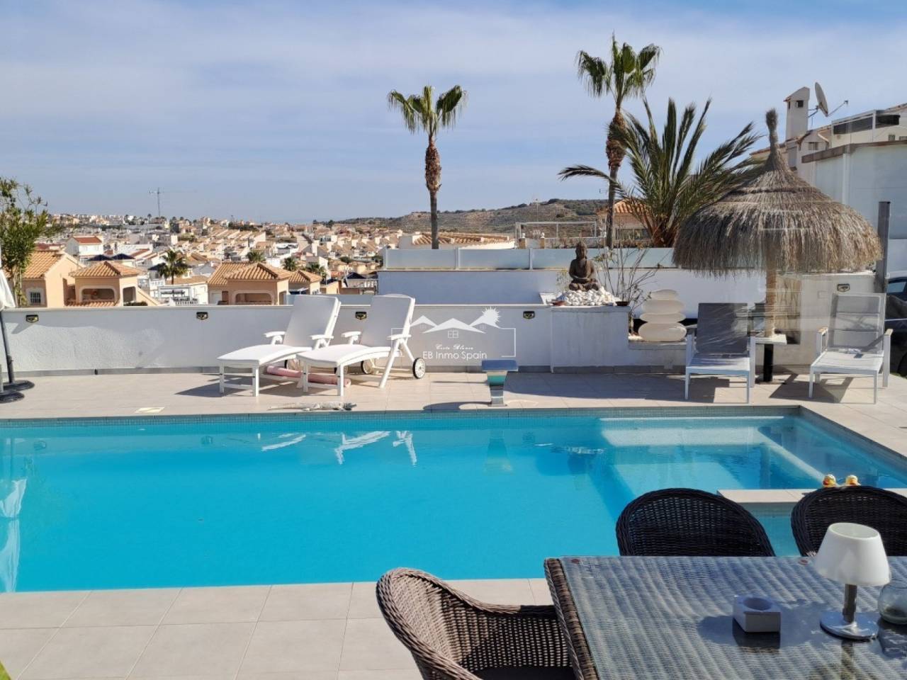 What a stunning detached luxury villa in Ciudad Quesada, This unique investment opportunity with 2 independent apartments, a private studio, giving an ideal opportunity for a Bed & Breakfast or big family living. Set on a large 1071 m² plot, this modern property consists of three separate buildings, including: A main villa with an expansive open-plan living and dining area, designer kitchen with island, 2 large bedrooms with en-suite bathrooms, and a spectacular 120 m² rooftop solarium with panoramic views of the valley and distant sea. A 60 m² apartment with 2 bedrooms, 1 bathroom, living room, and kitchenette.A private studio with 1 bedroom and 1 bathroom, perfect for guests or rental income.An additional building with 1 bedroom and 1 bathroom, currently used as an office, but easily convertible into a guest suite or storage area. The villa boasts a beautifully landscaped garden with artificial grass, private heated swimming pool, outdoor kitchen, barbecue area, and ample parking via an automatic gate. Smart home features include electric blinds, security cameras, solar panels, infrared heating, and fiber internet. Enjoy the best of Mediterranean living with premium amenities such as a spa/hot tub, garage, covered terrace, children's playground, and fully equipped kitchen. The property is being sold fully furnished, ready to move in or generate immediate rental income. Don’t miss this rare opportunity to own a luxurious multi-unit villa in one of Costa Blanca’s most desirable areas – ideal for large families, remote working, or hospitality ventures. Key Features: 5+ Bedrooms 5 Bathrooms 3 Independent Living Units Private Heated Pool & Rooftop Solarium Ready Smart Home Features & Solar Energy Ideal for B&B or Holiday Rentals Close to Golf Courses,