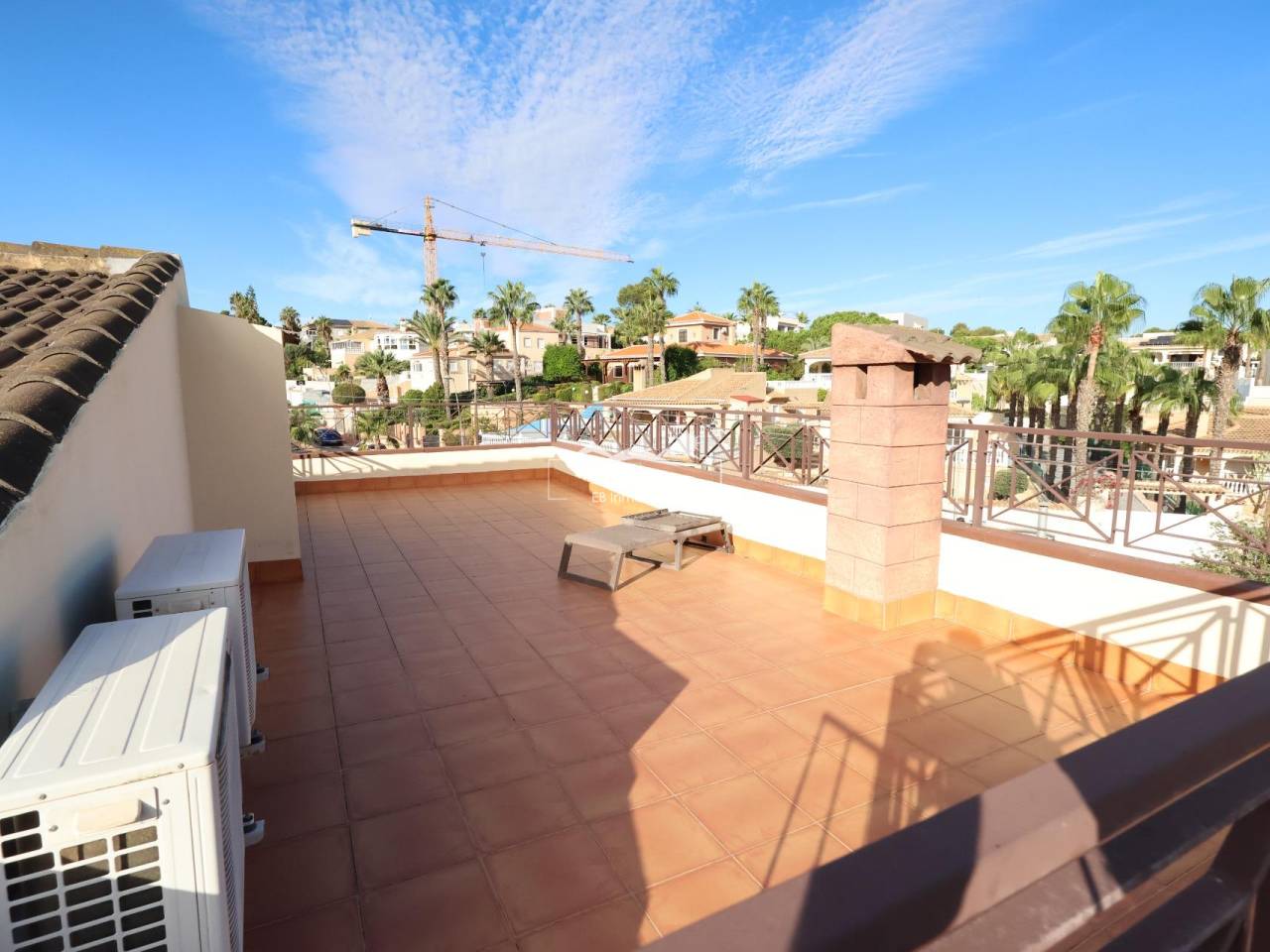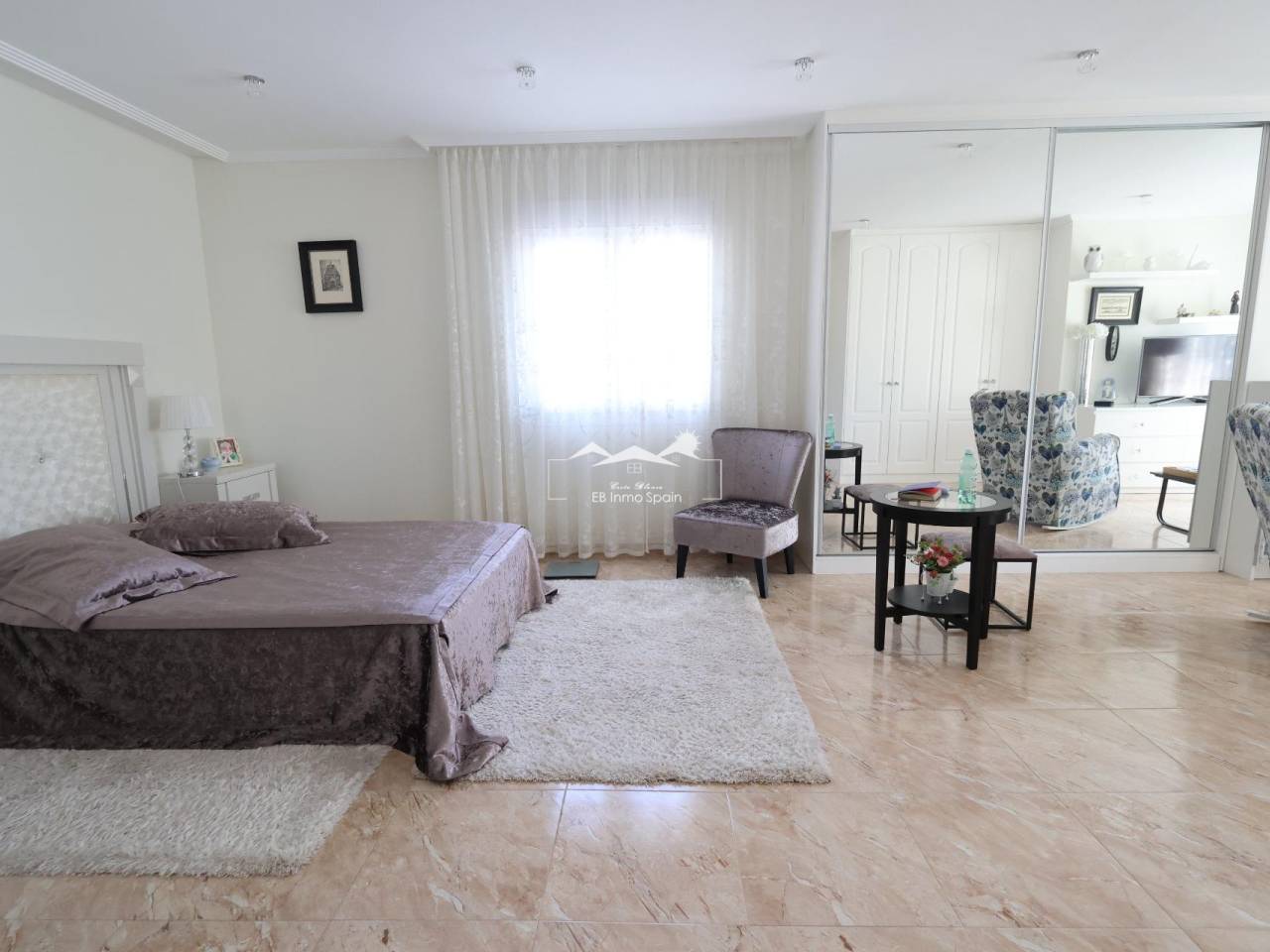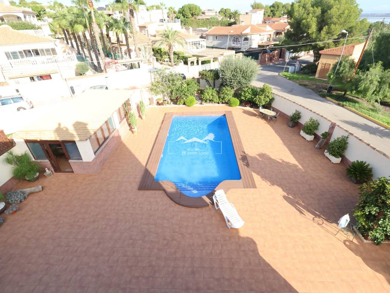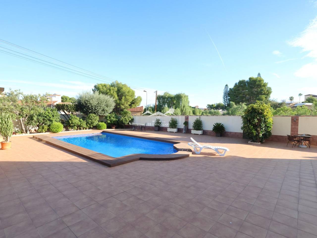 Los Balcones. Impressive detached villa on a corner plot, facing a park and just steps from the tennis club.. . Set on a generous 800 m² plot, this property stands out for its privacy, space, and comfort. The main house, distributed over two floors with a built area of 311 m², features:. . • 5 bedrooms and 3 bathrooms. • Spacious living-dining room with fireplace. • Large fully equipped independent kitchen. • Solarium with open views. • Enclosed barbecue area. • Private pool and driveway for several vehicles. . Additionally, it includes a separate guest house, ideal for visitors or rental purposes, offering 1 bedroom, bathroom, living room, and kitchen.. . The property is sold furnished and equipped with air conditioning, making it the perfect choice for large families or as an investment close to all amenities.