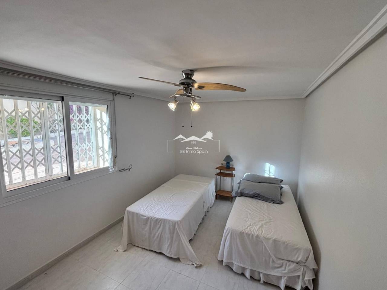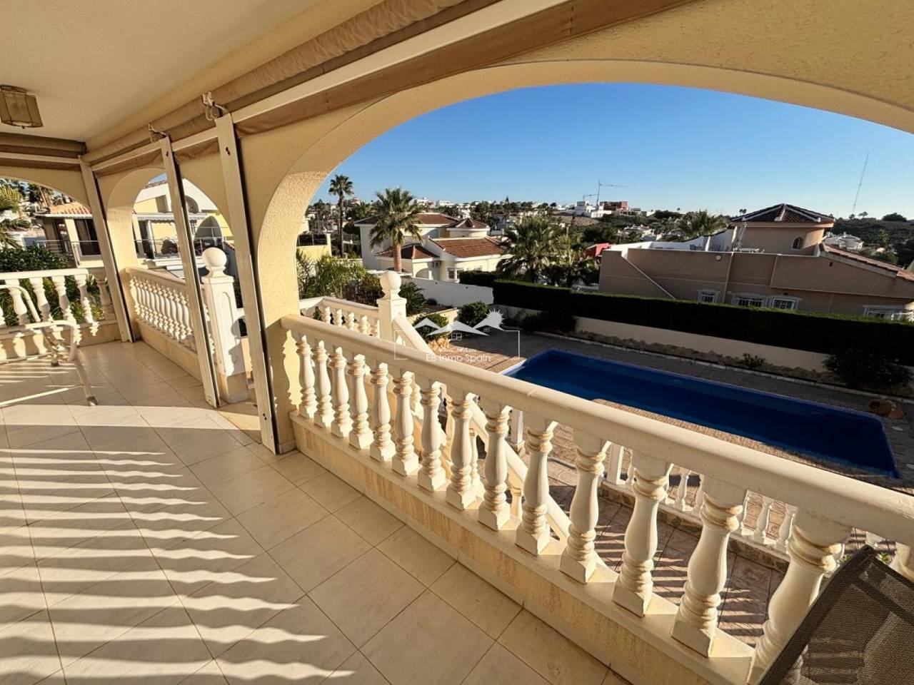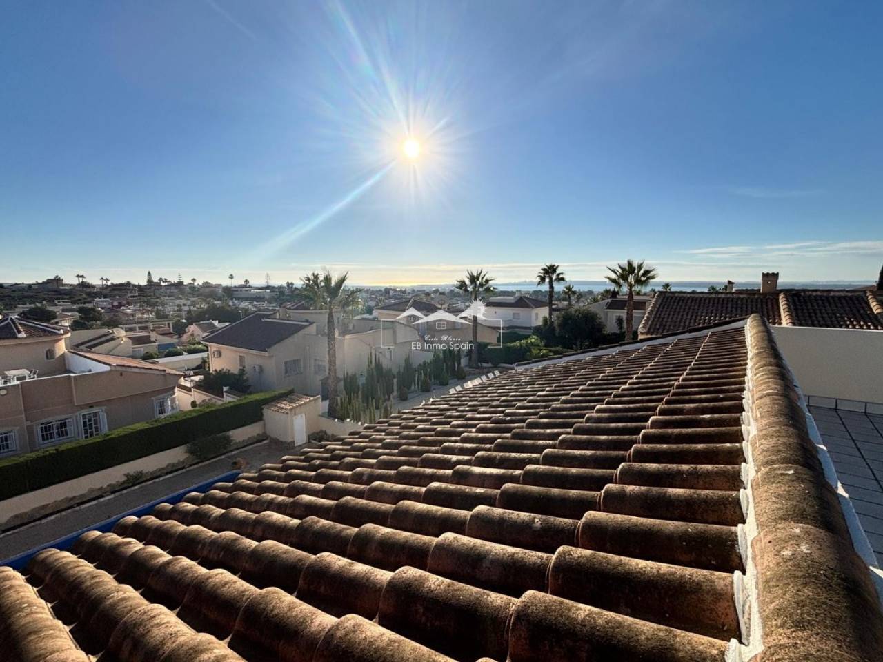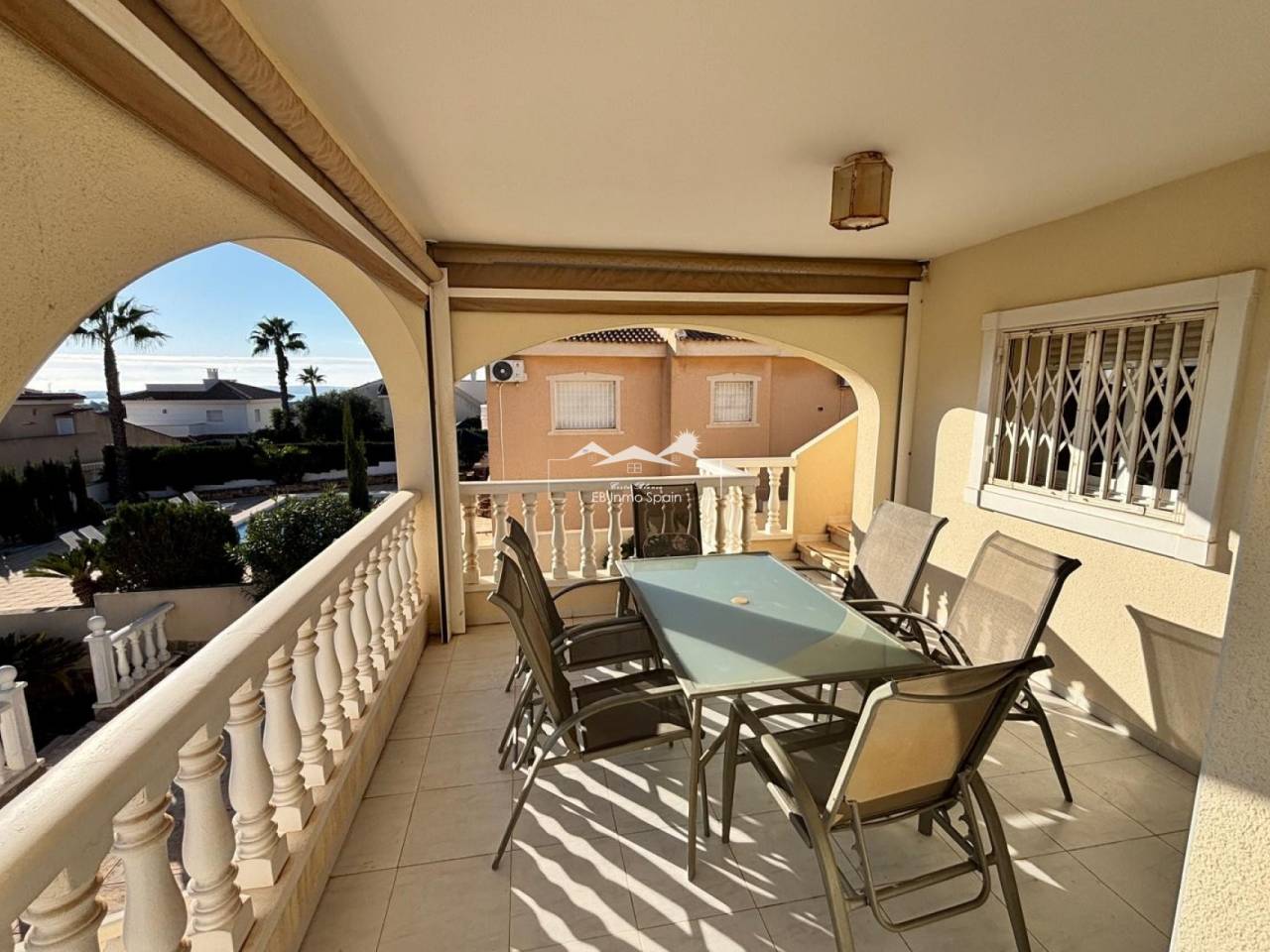 Here we have this amazing villa on the sought after area of La Fiesta. The property is set over 2 levels. Top level has 3 double bedrooms 2 bathrooms one being an en-suite, lounge and kitchen. There is a large covered terrace with views to the stunning swimming pool. Down stairs via a separate entrance is a self contained apartment with 2 double bedrooms bathroom separate lounge and kitchen. The property is set on a large plot with plenty of terraces and a large private pool. Complete with garage solarium with views to the lakes. Being offered mainly furnished.