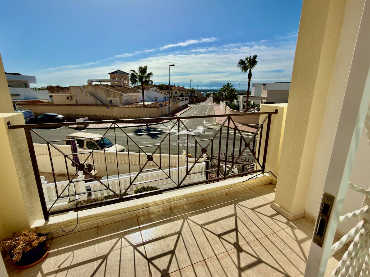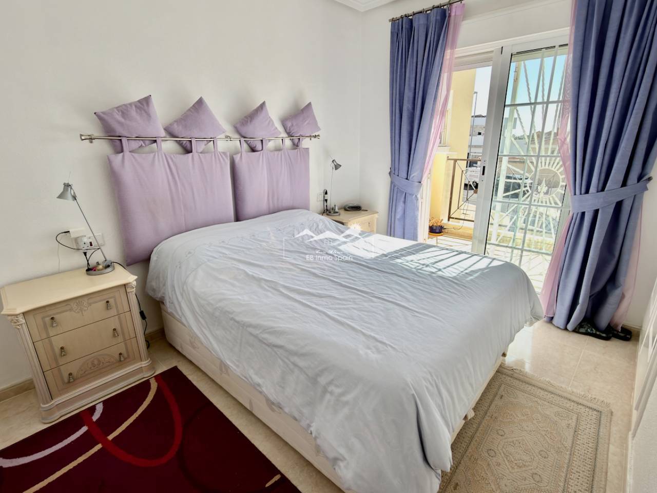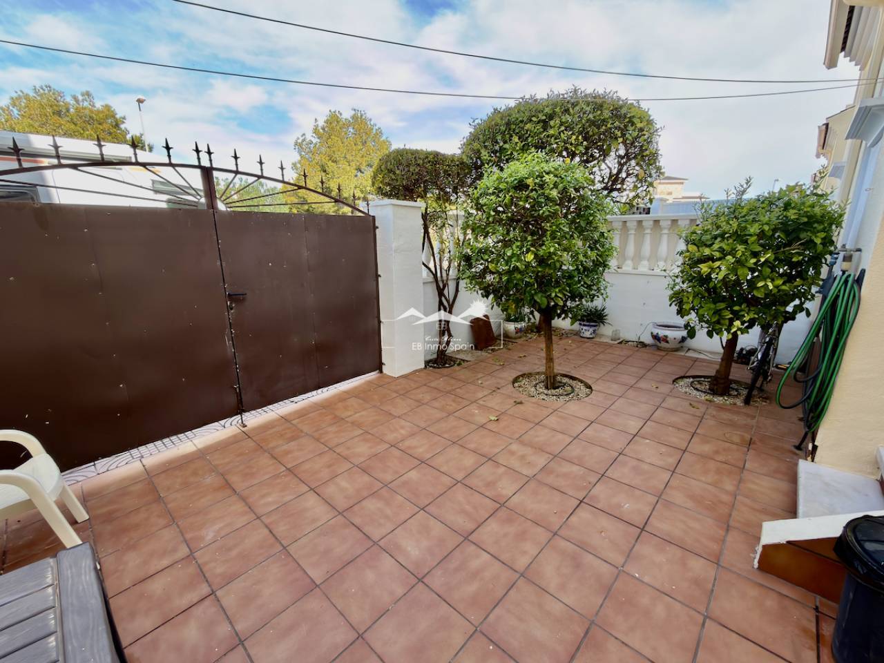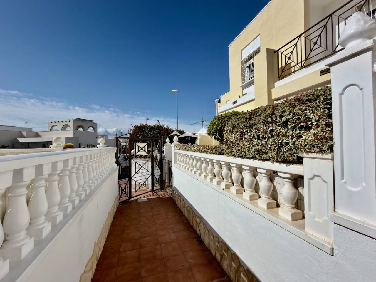 Beautiful 3-Bedroom Townhouse with Private Garden – Walking Distance to Town This charming three-bedroom townhouse offers comfort, convenience, and excellent outdoor living. Situated in a secure gated complex, the property enjoys a south-facing orientation, allowing plenty of natural sunlight throughout the day. The villa features three spacious double bedrooms with built-in wardrobes and two bathrooms, including a private en-suite. The renovated American-style kitchen is modern and functional and connects to a useful separate utility room. Outside, the property boasts a private terrace, perfect for relaxing, sunbathing, or enjoying outdoor dining and barbecues. Residents also benefit from access to a communal swimming pool within the complex. One of the standout features of this villa is its fantastic location—just a short 10 minute walk to the town centre and local amenities, making shops, restaurants, and services easily accessible. Additional features include air conditioning, ceiling fans, white goods, off-road parking, gated entry, and street views, making this property ideal as a permanent residence, holiday home, or investment opportunity. Property Details: Bedrooms: 3Bathrooms: 2Built Area: 100 m²Kitchen: 1 (American Style)Built-in Wardrobes: 3Orientation: SouthPool: Communal Distances: Beach: 10 minutesAirport: 30 minutesAmenities: 3 minutesGolf: 15 minutes