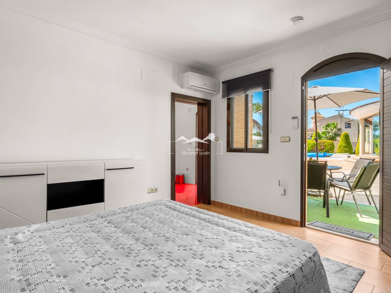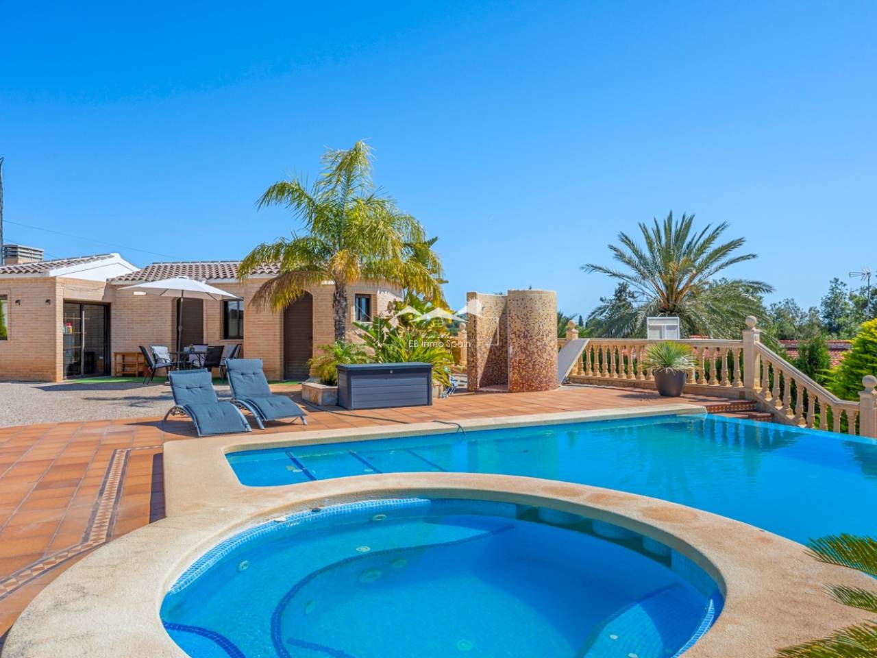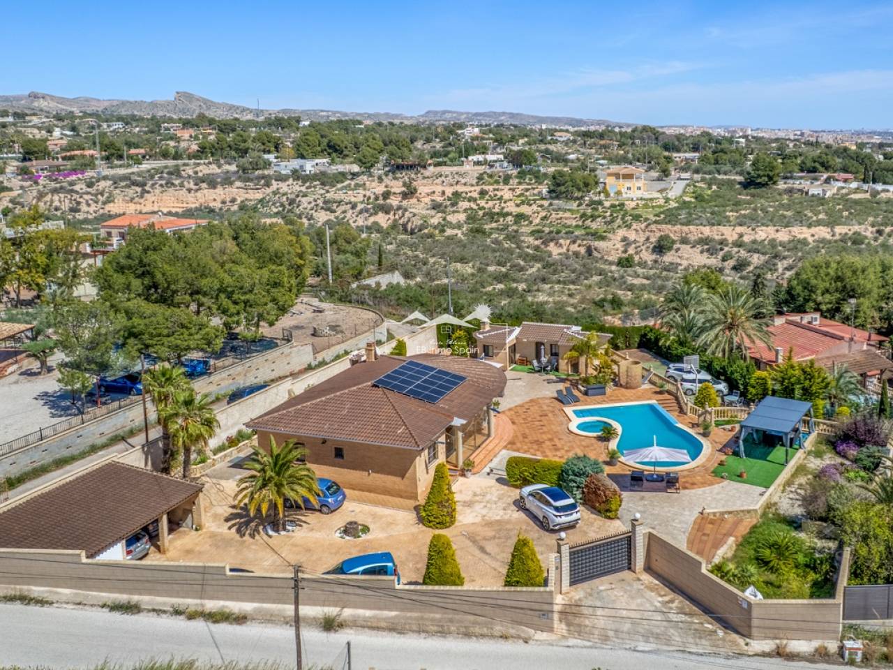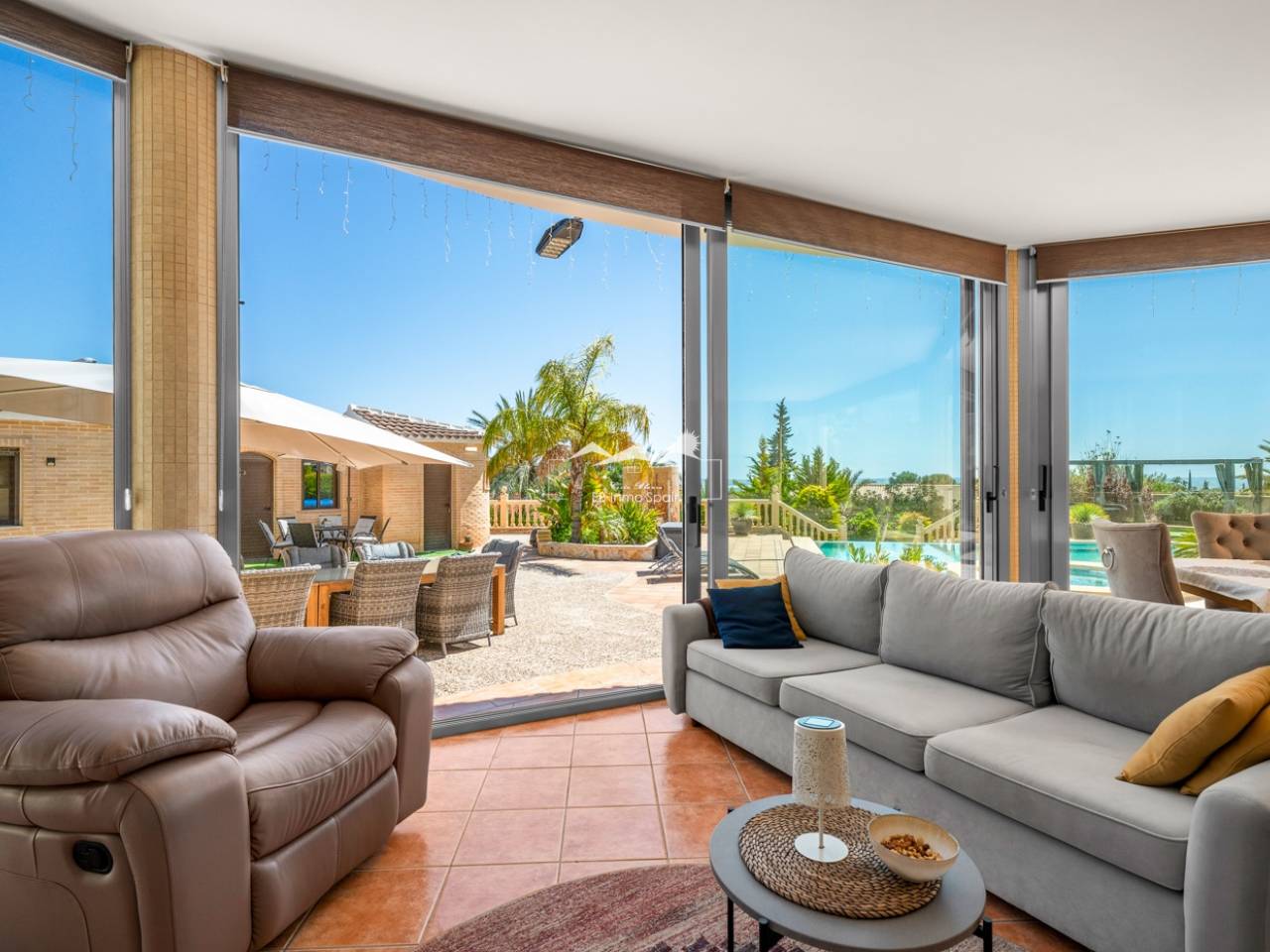 Discover this spectacular estate in Crevillente, a true oasis of tranquility where privacy and comfort blend seamlessly. Situated on a spacious 2,500 m² plot, with 180 m² of living space, this property is ideal for those seeking an exclusive lifestyle surrounded by nature. Outside, you'll be captivated by its impressive, large heated swimming pool, perfect for year-round enjoyment, alongside a practical garage with space for two vehicles. It also boasts a charming, fully independent guest house, equipped with a bathroom, kitchen, and bedroom, ideal for comfortably hosting family or friends. The main house features a beautiful glass-enclosed conservatory, a light-filled haven that invites you to relax and enjoy even on cooler days. Inside, you'll find a spacious and inviting living room with air conditioning, a fully equipped independent kitchen, three bright bedrooms, and a bathroom. All rooms have air conditioning, and the property also includes a laundry room and storage room for added convenience. Its superb orientation guarantees sunshine throughout the day, while its expansive outdoor spaces offer endless possibilities for leisure and relaxation. A unique, move-in ready property where every detail has been designed for enjoying life to the fullest.