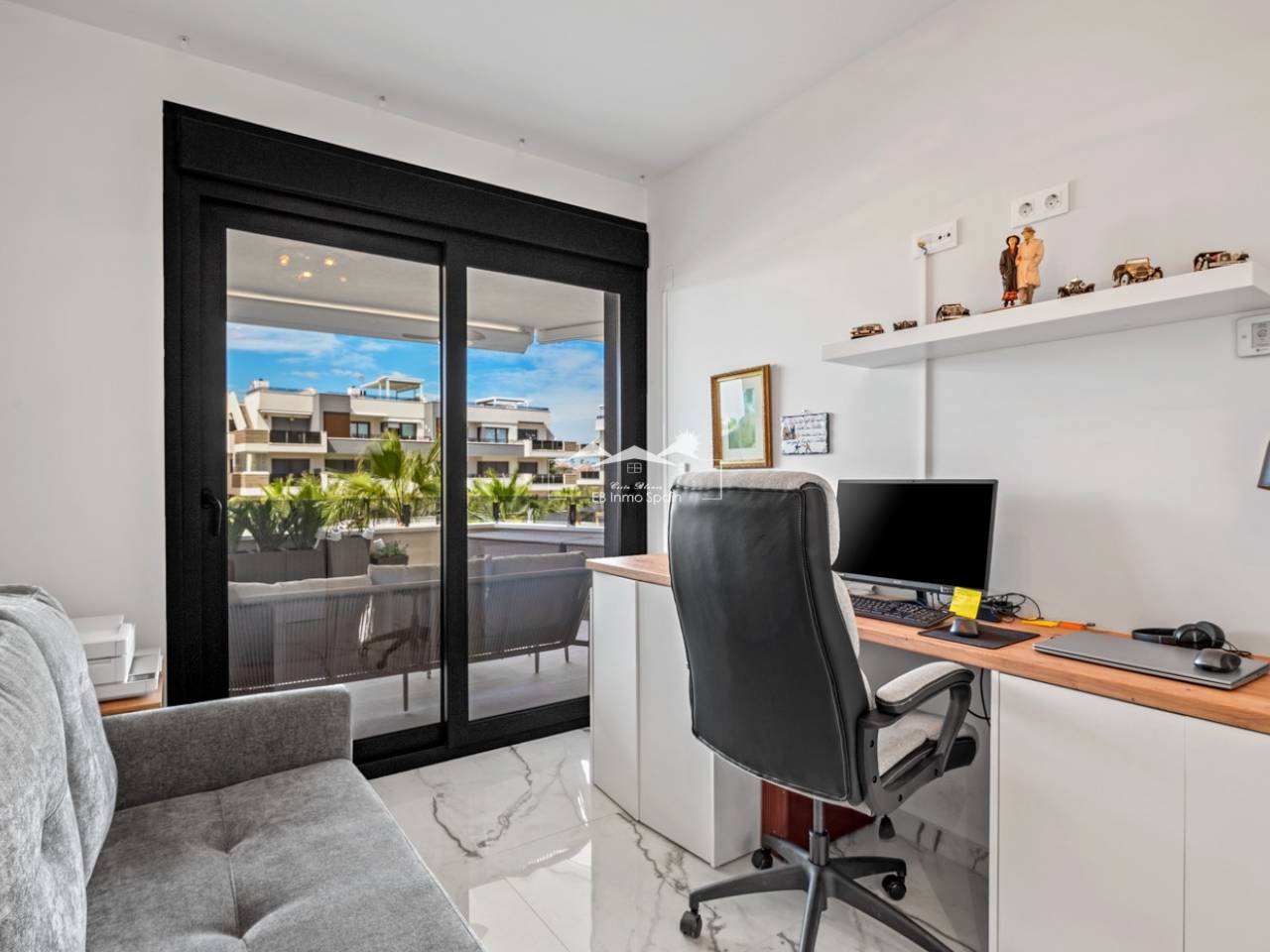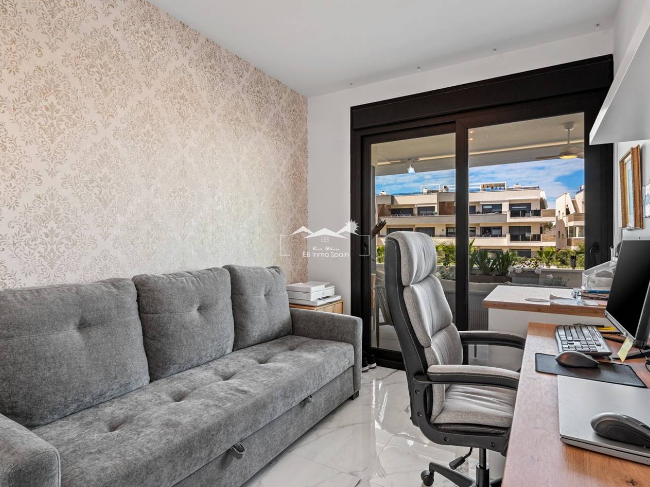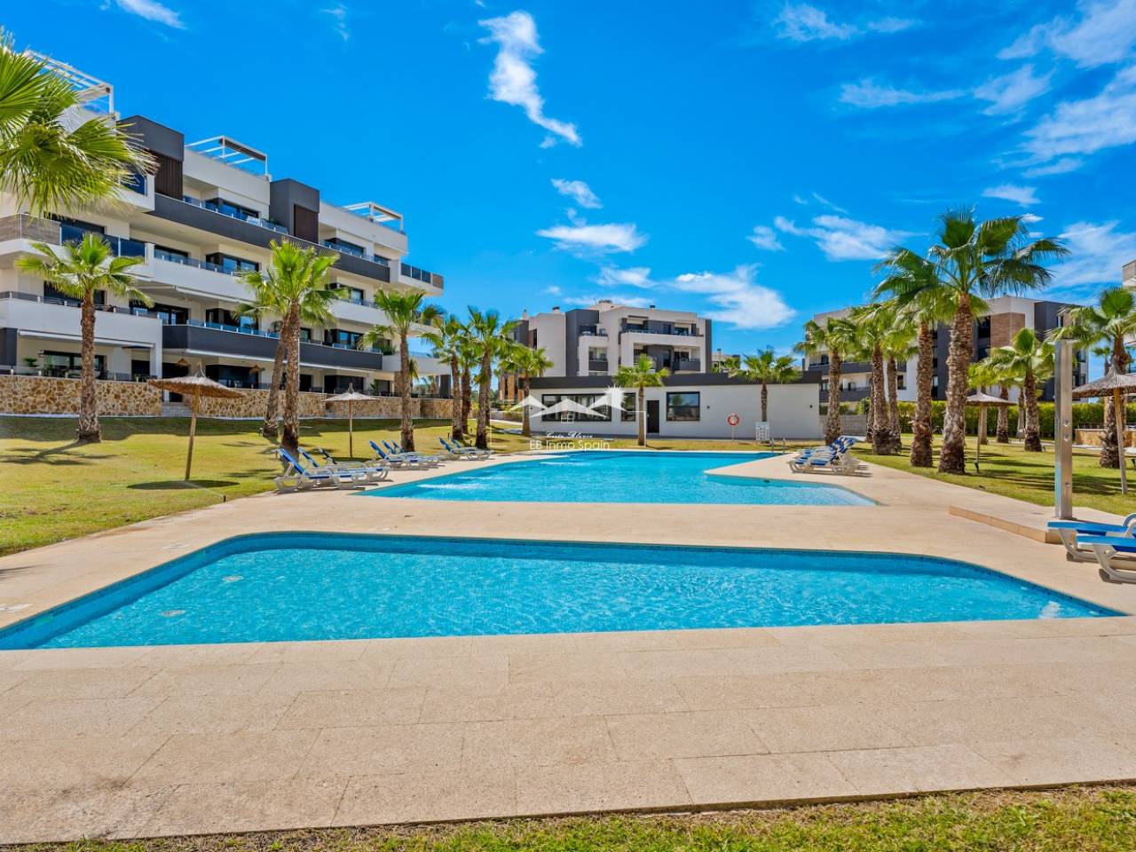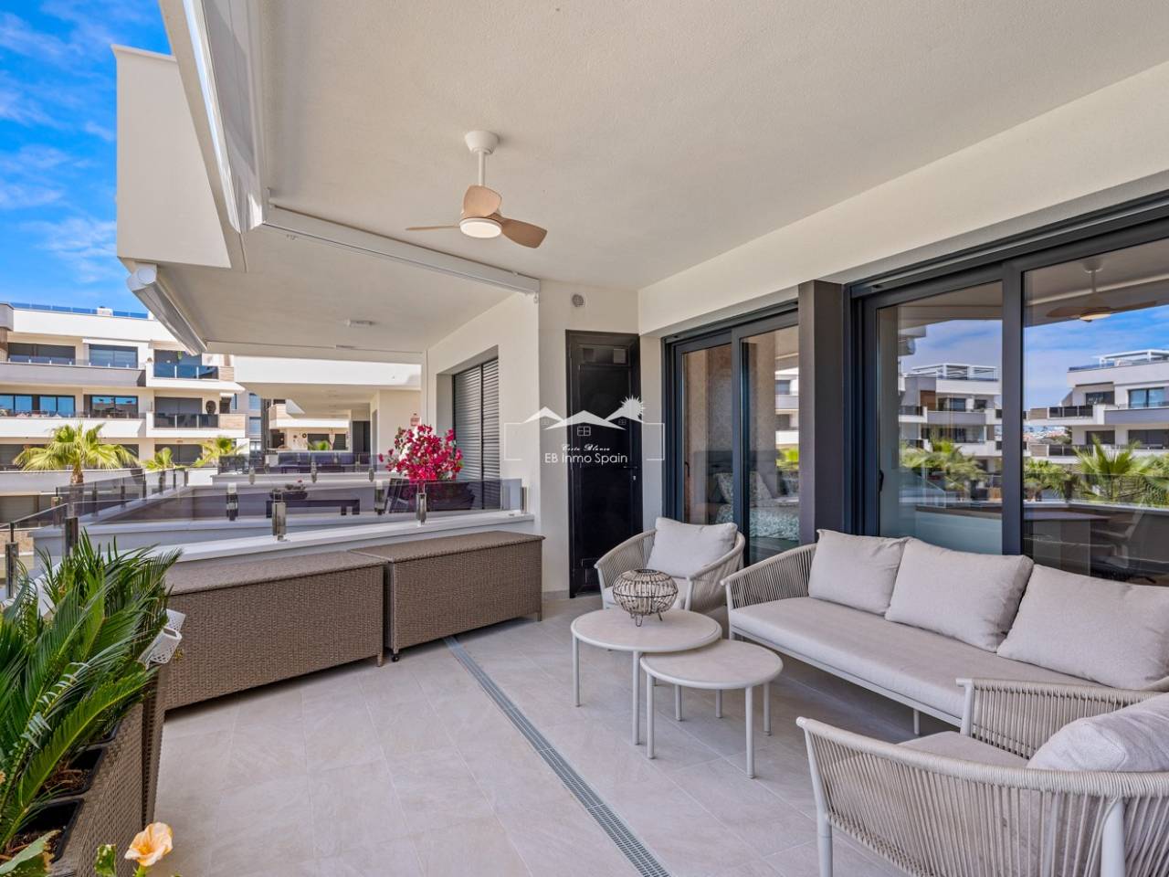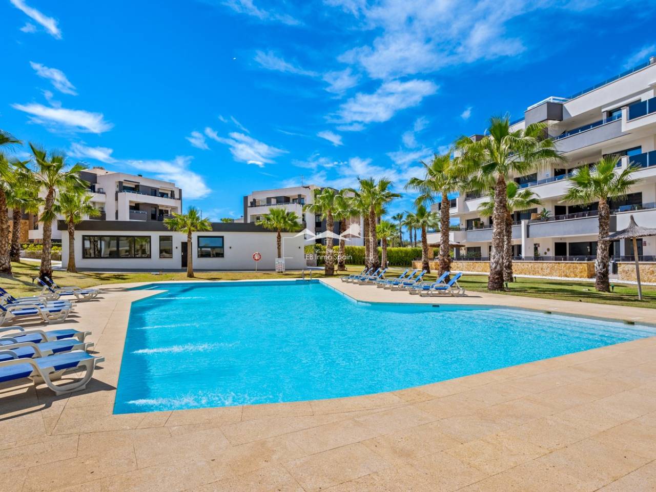 Luxury apartment in Resort Amanecer X, located in the popular area of Los Altos in Orihuela Costa. This stylish and contemporary apartment was completed in 2024 and represents an excellent opportunity as a holiday home, permanent residence, or investment with strong rental potential. The apartment features a bright, open-plan living room with kitchen and dining area, designed to maximize space and natural light. Large windows create an airy atmosphere and provide direct access to a spacious private terrace, seamlessly blending indoor and outdoor living. The kitchen is fully equipped with modern appliances and finished in a sleek, contemporary style that integrates perfectly with the living space. There are two spacious bedrooms, both with built-in wardrobes and located on the terrace side of the apartment, as well as two modern bathrooms finished to a high standard. The apartment is sold fully furnished and has a total surface area of 65 m², offering a practical and well-balanced layout. One of the standout features is the generous private terrace of over 25 m², overlooking the landscaped gardens and communal swimming pool. Thanks to its southwest orientation, the terrace enjoys excellent sun exposure, making it ideal for relaxing or outdoor dining. The apartment is located on the first floor of building number 8 with an elevator and includes an underground parking space and a private storage room. It is equipped with air conditioning, an Airzone climate control system, underfloor heating in the bathrooms, and electric shutters, ensuring year-round comfort. The property is in perfect condition, fully furnished, and ready to move in! Residents of Amanecer X enjoy a resort-style environment with access to a large communal swimming pool, a children’s pool, a fully equipped gym, as well as a jacuzzi and sauna. All of this is surrounded by beautifully maintained tropical gardens with adapted access for people with reduced mobility. The location is highly convenient: restaurants, cafés, and supermarkets are within walking distance, and La Zenia Boulevard is just a few minutes’ drive away. For golf enthusiasts, the area offers a wide selection of nearby courses, including Villamartín Golf just 5 minutes away, Real Club de Golf Campoamor and Las Ramblas Golf within approximately 10 minutes, and the prestigious Las Colinas Golf & Country Club about 15 minutes from the apartment. The sandy beaches of Orihuela Costa, such as La Zenia Beach, Playa Flamenca, Cabo Roig, and Campoamor, are all within a 10-minute drive. The apartment is ideally located between two major airports, offering excellent connections: Alicante Airport is approximately 45 minutes away, and Murcia International Airport is around 35 to 40 minutes by car.