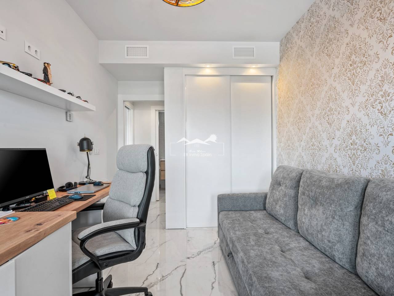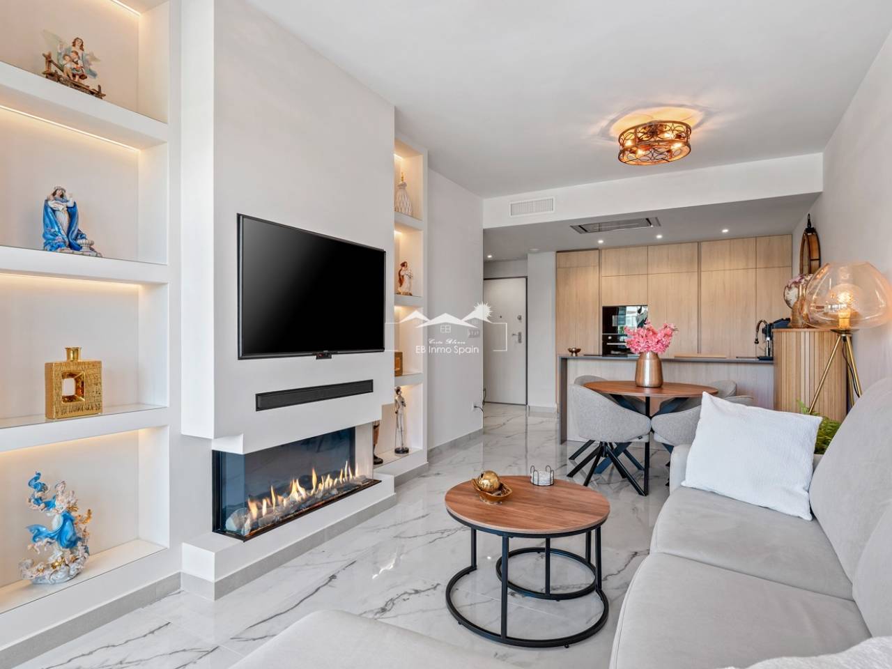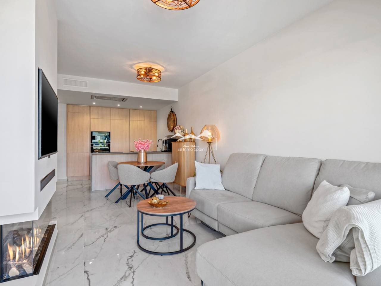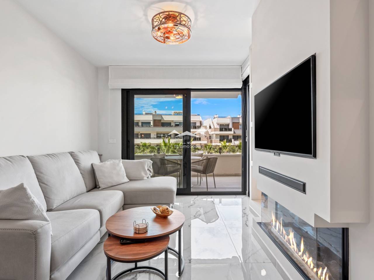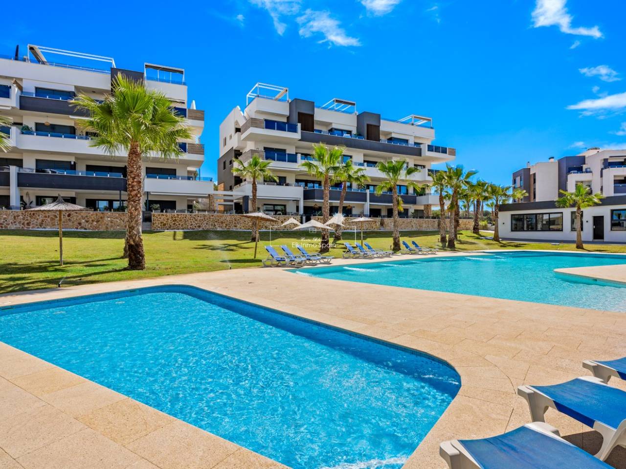 Luxury apartment in Resort Amanecer X, located in the popular area of Los Altos in Orihuela Costa. This stylish and contemporary apartment was completed in 2024 and represents an excellent opportunity as a holiday home, permanent residence, or investment with strong rental potential. The apartment features a bright, open-plan living room with kitchen and dining area, designed to maximize space and natural light. Large windows create an airy atmosphere and provide direct access to a spacious private terrace, seamlessly blending indoor and outdoor living. The kitchen is fully equipped with modern appliances and finished in a sleek, contemporary style that integrates perfectly with the living space. There are two spacious bedrooms, both with built-in wardrobes and located on the terrace side of the apartment, as well as two modern bathrooms finished to a high standard. The apartment is sold fully furnished and has a total surface area of 65 m², offering a practical and well-balanced layout. One of the standout features is the generous private terrace of over 25 m², overlooking the landscaped gardens and communal swimming pool. Thanks to its southwest orientation, the terrace enjoys excellent sun exposure, making it ideal for relaxing or outdoor dining. The apartment is located on the first floor of building number 8 with an elevator and includes an underground parking space and a private storage room. It is equipped with air conditioning, an Airzone climate control system, underfloor heating in the bathrooms, and electric shutters, ensuring year-round comfort. The property is in perfect condition, fully furnished, and ready to move in! Residents of Amanecer X enjoy a resort-style environment with access to a large communal swimming pool, a children’s pool, a fully equipped gym, as well as a jacuzzi and sauna. All of this is surrounded by beautifully maintained tropical gardens with adapted access for people with reduced mobility. The location is highly convenient: restaurants, cafés, and supermarkets are within walking distance, and La Zenia Boulevard is just a few minutes’ drive away. For golf enthusiasts, the area offers a wide selection of nearby courses, including Villamartín Golf just 5 minutes away, Real Club de Golf Campoamor and Las Ramblas Golf within approximately 10 minutes, and the prestigious Las Colinas Golf & Country Club about 15 minutes from the apartment. The sandy beaches of Orihuela Costa, such as La Zenia Beach, Playa Flamenca, Cabo Roig, and Campoamor, are all within a 10-minute drive. The apartment is ideally located between two major airports, offering excellent connections: Alicante Airport is approximately 45 minutes away, and Murcia International Airport is around 35 to 40 minutes by car.