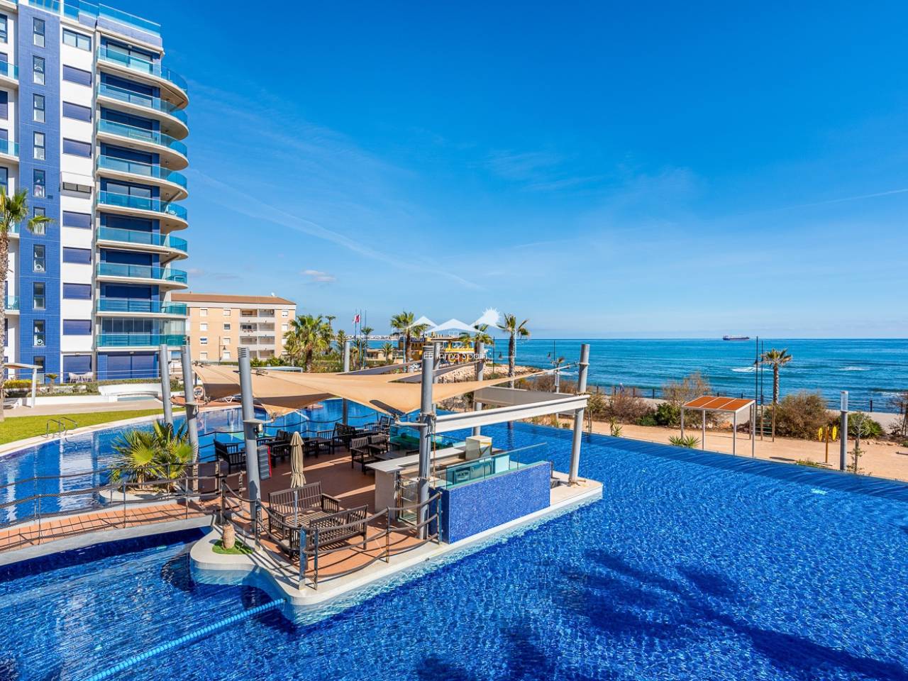 Bienvenue dans cet appartement exclusif de deux chambres et deux salles de bain situé dans le prestigieux complexe résidentiel Sea Senses, en toute première ligne de côte, offrant une vue imprenable sur la Costa Blanca. Construit dans un style moderne et avec une qualité exceptionnelle, ce logement allie luxe, confort et un style de vie unique en bord de mer. Dès l’entrée, vous serez accueilli par un salon-salle à manger lumineux et spacieux en espace ouvert, où de larges baies vitrées coulissantes s’ouvrent sur une grande terrasse avec vue panoramique sur la mer — l’endroit idéal pour savourer le café du matin, dîner en plein air ou admirer des couchers de soleil méditerranéens inoubliables. La cuisine est entièrement équipée avec des appareils modernes et s’intègre parfaitement à l’espace de vie, assurant praticité au quotidien comme lors de réceptions. Les deux chambres sont généreusement dimensionnées, dont une suite parentale avec sa propre salle de bain et un accès direct à la terrasse, offrant confort et intimité à la famille ou aux invités. Vivre à Sea Senses, c’est profiter chaque jour d’une véritable expérience de style resort. Les résidents ont accès à de multiples piscines — y compris des piscines à débordement donnant sur la mer — ainsi qu’à des jacuzzis, saunas, salle de sport et espaces privés de détente. Pour les familles, des aires de jeux sécurisées sont prévues pour les enfants. Un parking souterrain sécurisé et un débarras privé ajoutent à la praticité et à la valeur de cette propriété exceptionnelle. Avec son emplacement imbattable en première ligne de plage, ses vues spectaculaires sur la mer et ses équipements de standing, cet appartement offre une occasion rare de posséder un véritable coin de paradis sur la Costa Blanca.