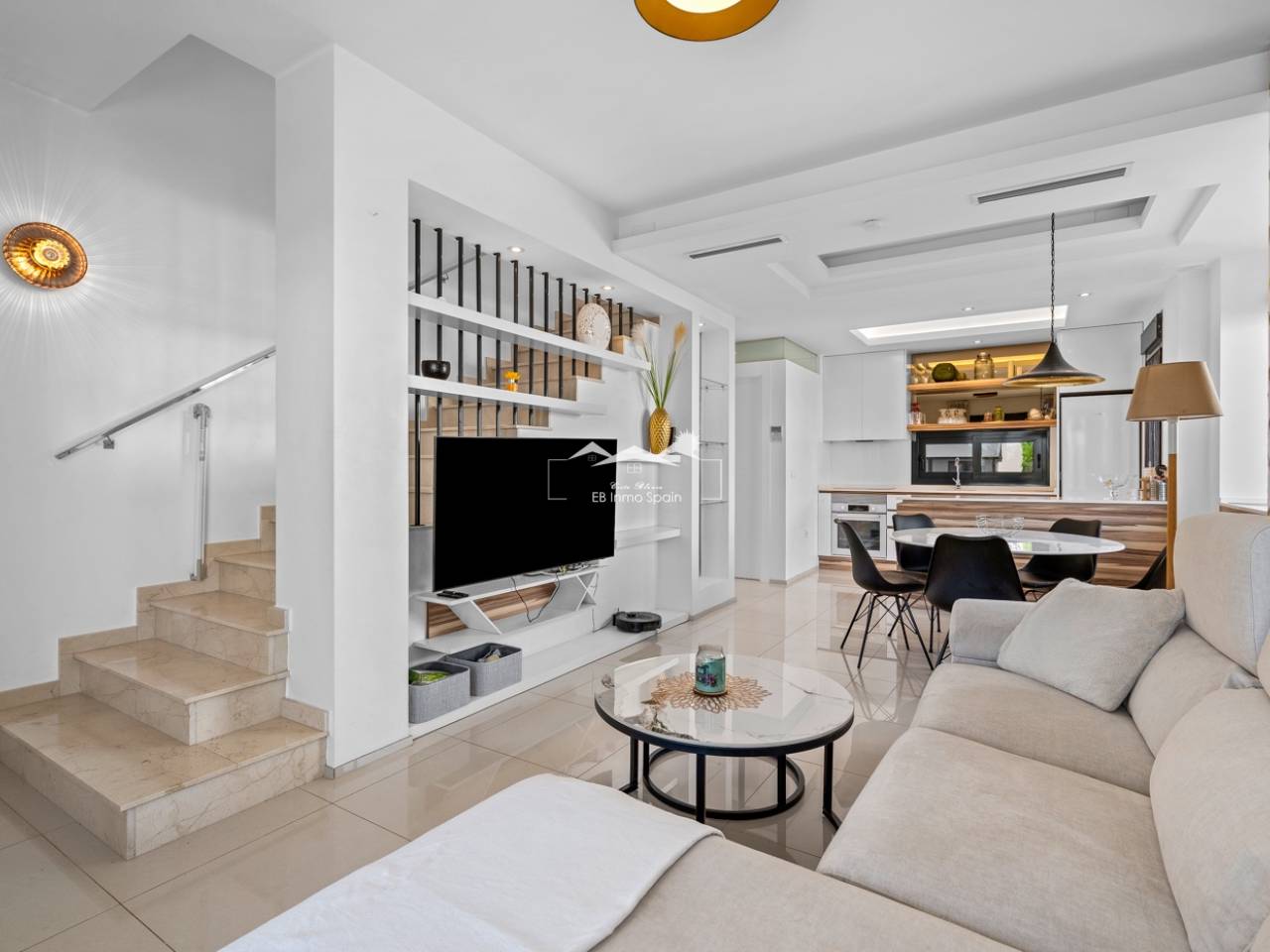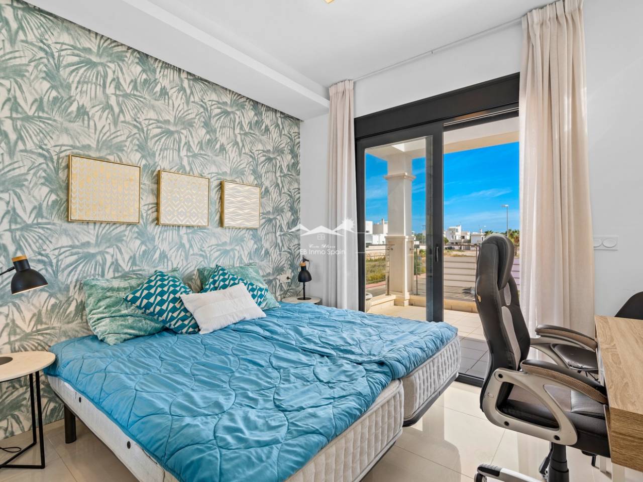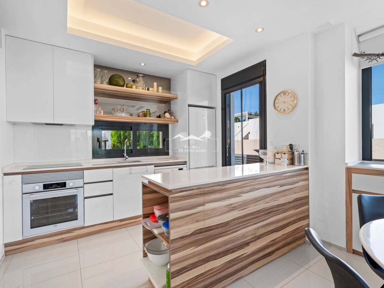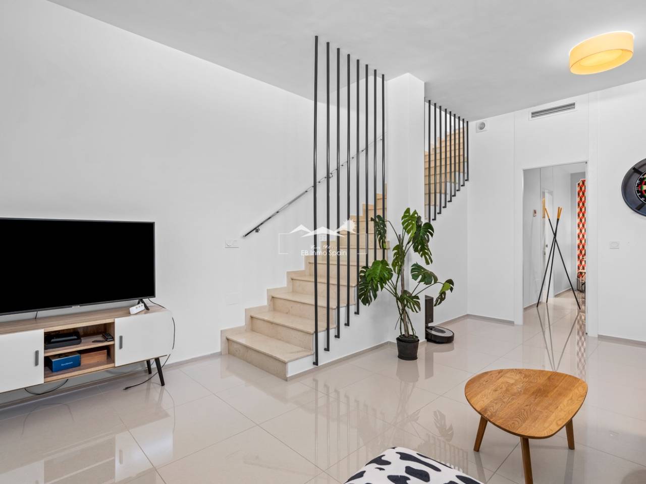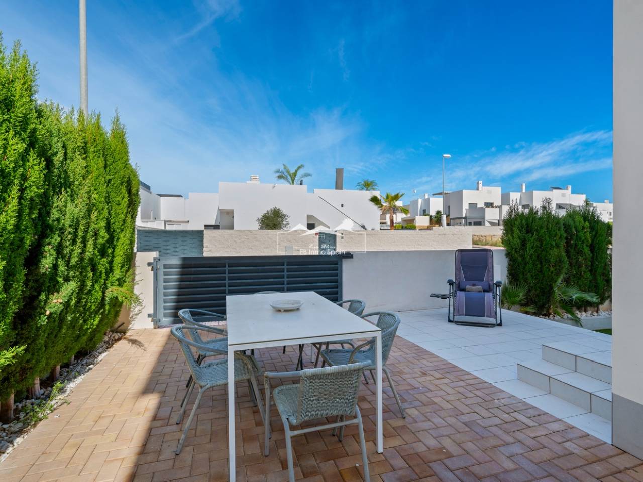 Cette charmante maison mitoyenne est située dans un quartier prestigieux de Ciudad Quesada, au sein d’une résidence fermée et tranquille offrant à ses résidents une belle piscine commune et de magnifiques espaces verts dédiés à la détente. C’est l’endroit idéal pour ceux qui souhaitent combiner confort quotidien, style méditerranéen et ambiance de vacances tout au long de l’année. L’intérieur a été conçu avec soin pour allier fonctionnalité et confort. Au rez-de-chaussée, un vaste salon lumineux s’ouvre sur une cuisine moderne à l’américaine. Depuis ces deux espaces, on accède directement au jardin privé – un lieu parfait pour savourer un petit-déjeuner au soleil ou un dîner en plein air au coucher du soleil. Ce niveau comprend également un WC pour les invités et une buanderie pratique. Le sous-sol, lumineux et bien aménagé, dispose d’une chambre supplémentaire avec salle de bain privative ainsi que d’une salle de loisirs, idéale comme salle de sport, chambre d’amis ou espace de détente. À l’étage, deux chambres confortables avec placards intégrés partagent une élégante salle de bain. Chaque chambre bénéficie d’un accès direct à son propre balcon privé, offrant une belle vue sur les espaces verts environnants et une lumière naturelle tout au long de la journée. Au sommet de la maison, un grand solarium constitue un véritable refuge privé, parfait pour bronzer, lire ou profiter des douces soirées espagnoles sous les étoiles. Entourée d’un jardin privé soigné, cette maison vous permet de profiter pleinement du climat méditerranéen et de plus de 300 jours d’ensoleillement par an. L’emplacement offre un accès facile aux supermarchés, restaurants, cafés et à toutes les commodités nécessaires. Cette propriété allie à la perfection confort, élégance et tranquillité – idéale aussi bien comme résidence principale que comme investissement. Entièrement meublée et prête à emménager, elle vous invite à commencer un nouveau chapitre de votre vie sous le chaleureux soleil d’Espagne.
