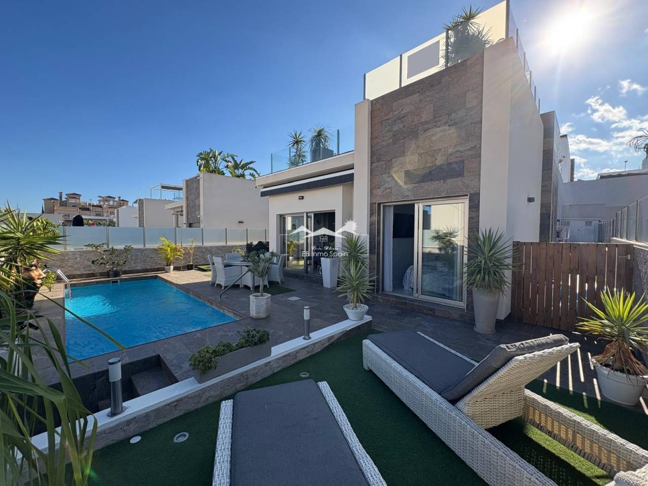 Découvrez cette charmante villa de 4 chambres et 2,5 salles de bains située dans le quartier très prisé de Villamartin, à quelques pas du célèbre parcours de golf de Villamartin et à seulement 10 minutes de la plage. Située sur un terrain de 329 m² avec une surface construite de 123 m², cette propriété offre la combinaison parfaite entre confort, espace et style de vie méditerranéen. La villa est vendue partiellement meublée et comprend un salon et une salle à manger lumineux et ouverts, une cuisine entièrement équipée et des chambres spacieuses conçues pour la vie de famille ou l'accueil d'invités. Sortez pour profiter de votre piscine privée entourée d'une terrasse ensoleillée, idéale pour se détendre ou recevoir. Pour ceux qui aiment la vie en plein air, le point fort de cette propriété est l'immense solarium avec un coin bar, parfait pour prendre un verre au coucher du soleil ou se retrouver entre amis ou en famille. Située dans un quartier résidentiel paisible, la villa se trouve à moins d'un kilomètre de toutes les commodités essentielles, notamment des magasins, des supermarchés, des bars et des restaurants. C'est une excellente occasion d'acquérir une villa bien entretenue dans l'une des zones les plus prisées de la Costa Blanca, idéale comme résidence permanente, maison de vacances ou investissement immobilier. Caractéristiques principales : 4 chambres, 2,5 salles de bains 123 m² construits | 329 m² de terrain Piscine privée Grand solarium avec bar Partiellement meublée Proche du terrain de golf de Villamartin À 10 minutes de la plage À 1 km des commodités, bars et restaurants