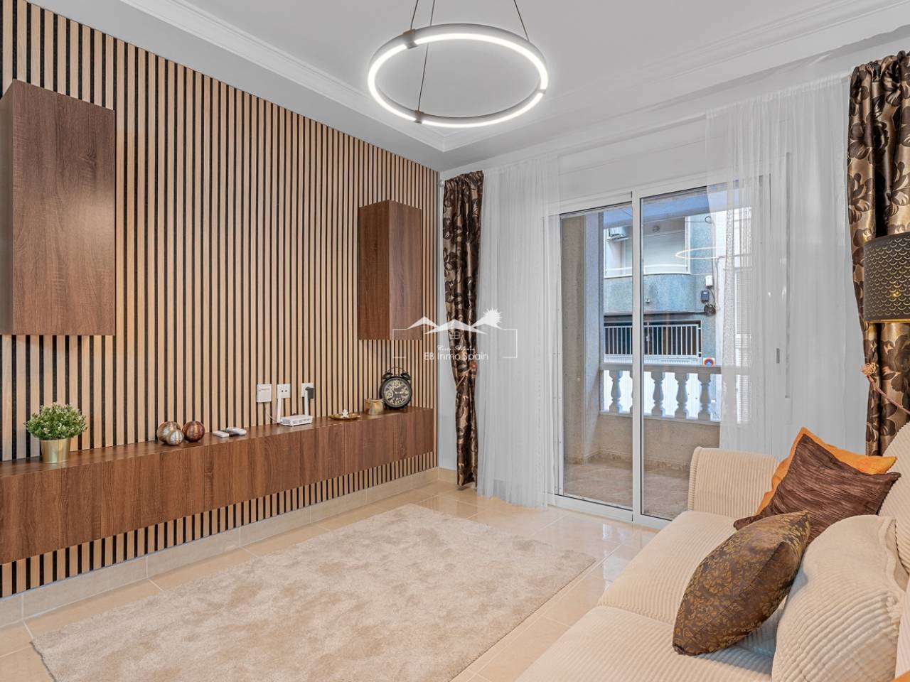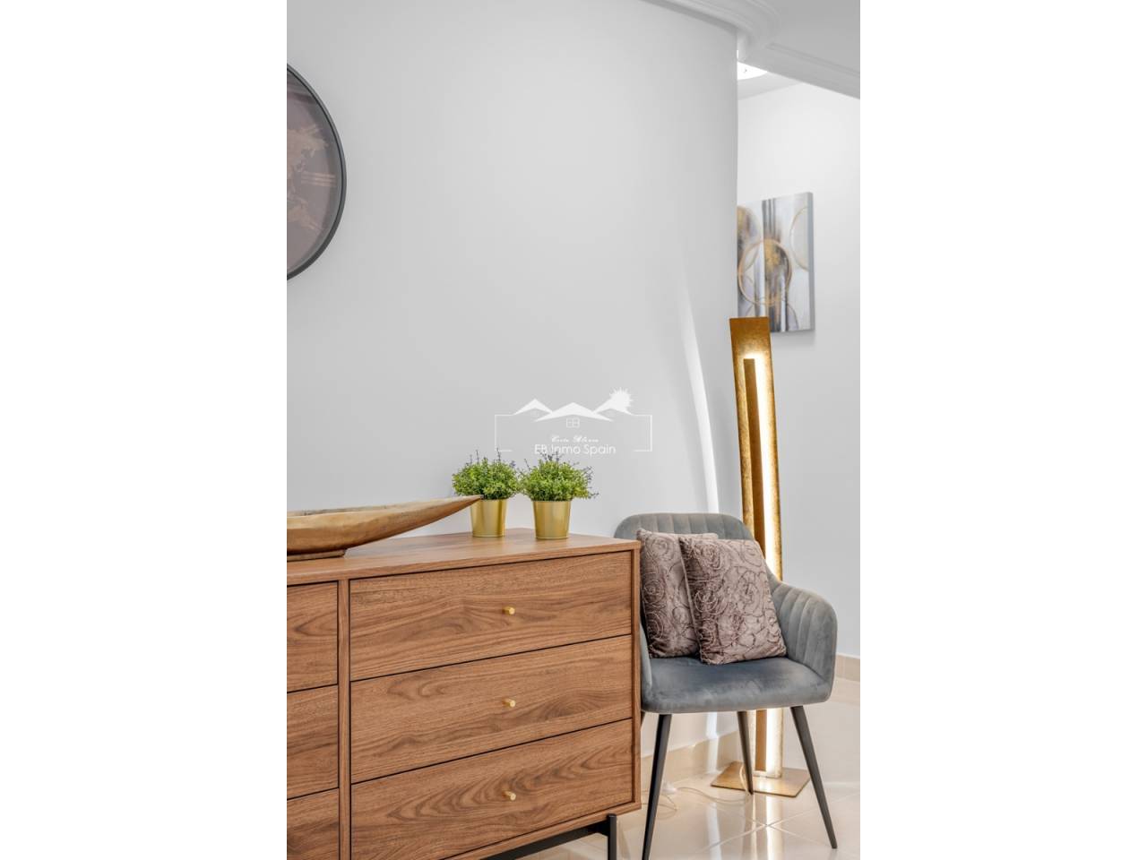 Découvrez ce magnifique appartement au rez-de-chaussée, situé à seulement 150 mètres de la plage de Los Locos à Torrevieja, l’un des quartiers les plus recherchés de la Costa Blanca. Un lieu idéal pour ceux qui rêvent de vivre au bord de la mer, dans une atmosphère méditerranéenne authentique, à proximité d’une belle promenade animée avec restaurants, cafés, boutiques et bars. L’appartement est situé dans une rue calme et paisible, offrant confort et intimité tout en restant proche de toutes les commodités et attractions de la ville côtière. Il dispose d’un balcon et d’un patio au même niveau, qui apportent une belle luminosité naturelle et créent un espace supplémentaire parfait pour se détendre ou profiter de l’extérieur. Le logement comprend deux chambres, deux salles de bain et un grand salon avec cuisine ouverte, donnant directement accès au balcon. Il a été entièrement rénové, y compris les installations électriques et de plomberie, garantissant un confort moderne et une tranquillité d’esprit totale. L’intérieur est décoré dans un style moderne et minimaliste, combinant l’élégance du blanc avec la chaleur du bois et la fraîcheur des plantes vertes. L’appartement est vendu partiellement meublé, comme montré sur les photos, tout en laissant la possibilité au futur propriétaire de personnaliser l’espace selon ses goûts. Grâce à son emplacement privilégié entre Playa del Cura et Playa de Los Locos, cette propriété représente une excellente opportunité, que ce soit comme résidence principale ou comme investissement locatif, avec un fort potentiel tout au long de l’année. Contactez-nous pour plus d’informations ou pour organiser une visite – cet appartement vous séduira dès le premier regard !