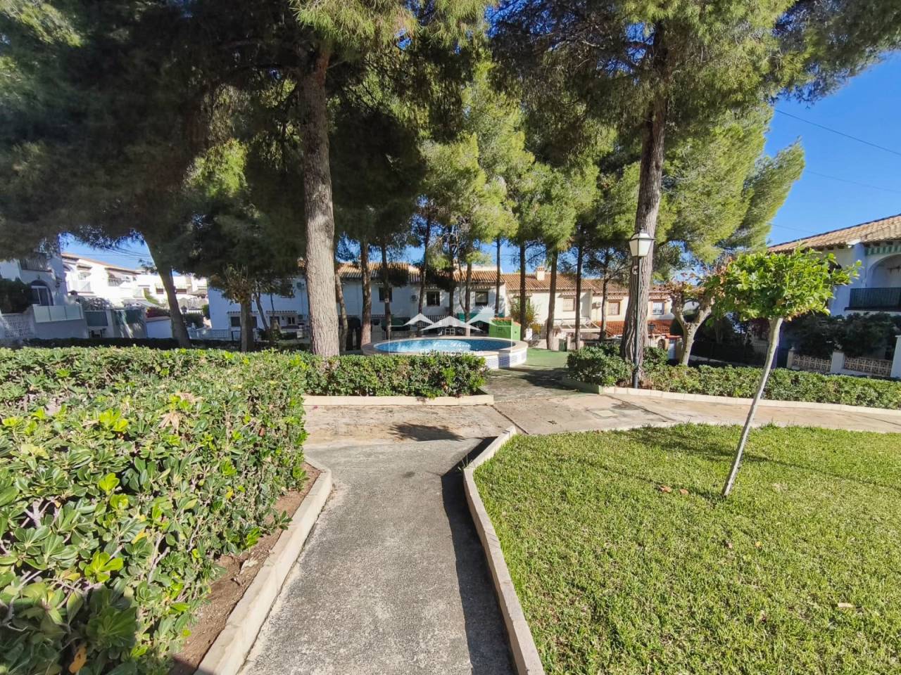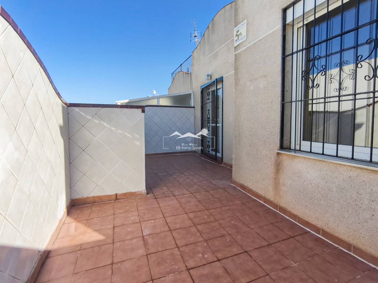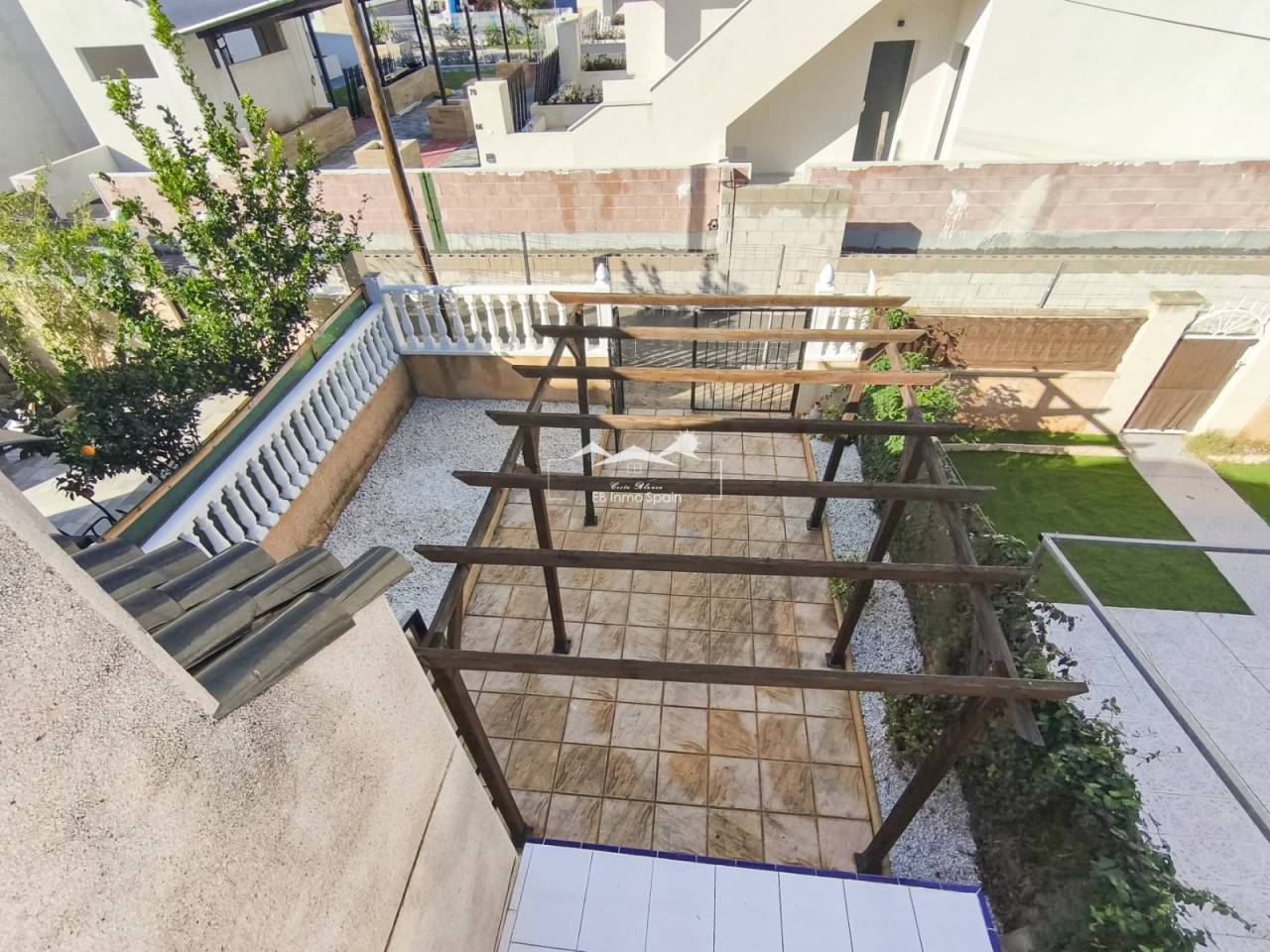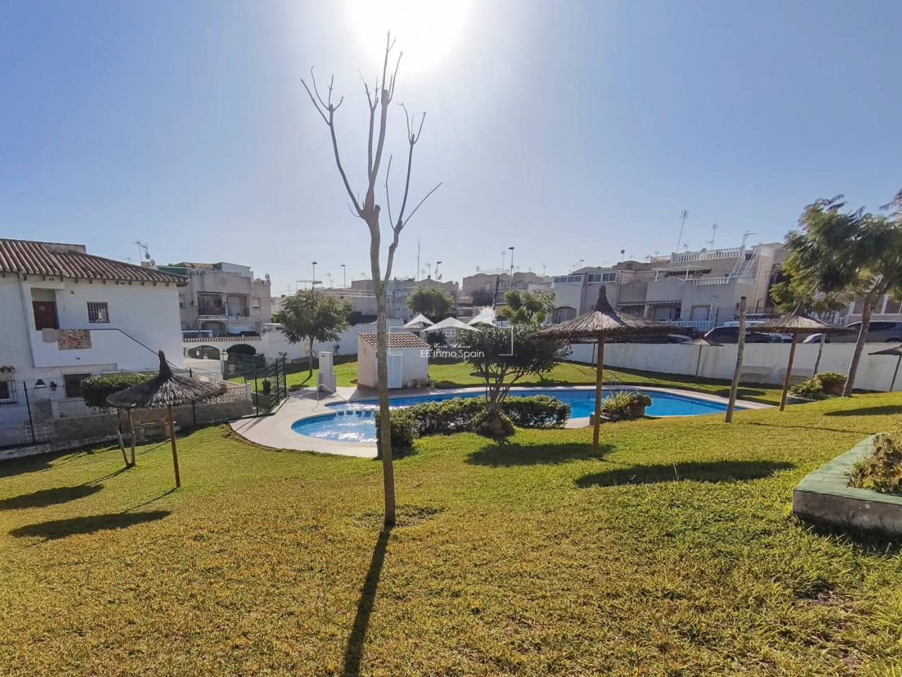 Ce charmant bungalow-duplex mitoyen est situé à Torrevieja, dans le quartier résidentiel bien établi de Los Balcones, au sein du complexe Lago Jardín II. L’environnement est calme et soigné, à seulement 4 km des plages de Torrevieja et à proximité de nombreux services tels que supermarchés, restaurants, bars et zones de loisirs, idéal pour y vivre toute l’année ou pour des séjours de vacances. La propriété est répartie sur deux niveaux et dispose d’un jardin privatif à l’avant d’environ 30 m². L’accès au bungalow se fait par une rue piétonne, garantissant tranquillité et intimité. L’accès en véhicule jusqu’à la maison n’est pas possible ; le stationnement se fait dans les zones prévues à proximité, avec un accès recommandé par la rue Laguna Verde. Le rez-de-chaussée comprend un salon-salle à manger lumineux, une cuisine ouverte avec bar et mobilier neuf, incluant meubles hauts et bas, plan de travail en marbre noir, hotte aspirante en acier inoxydable et chauffe-eau électrique, ainsi qu’une chambre et une salle de bain complète. À l’étage supérieur, accessible par un escalier intérieur, se trouvent deux chambres communicantes donnant accès à une grande terrasse-balcon avec vues agréables, idéale pour profiter du climat. Le jardin avant combine une zone carrelée et une zone en gravier blanc et dispose actuellement d’un gazebo en bois. La résidence offre également une piscine commune et des espaces verts partagés. La superficie construite est de 55 m², avec une parcelle de jardin de 30 m² à l’avant.