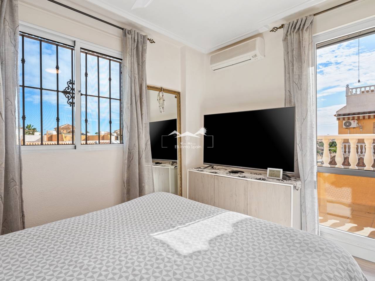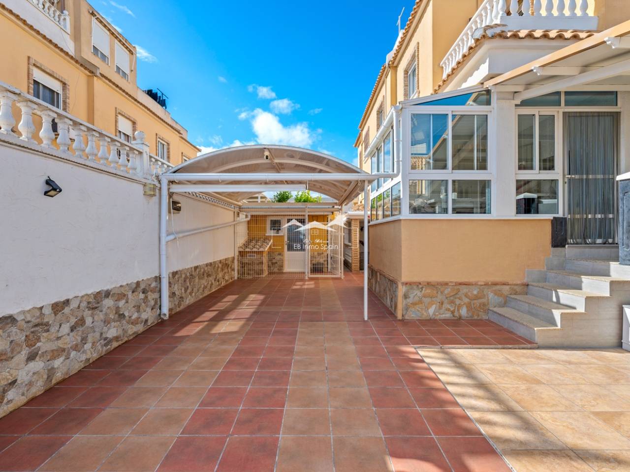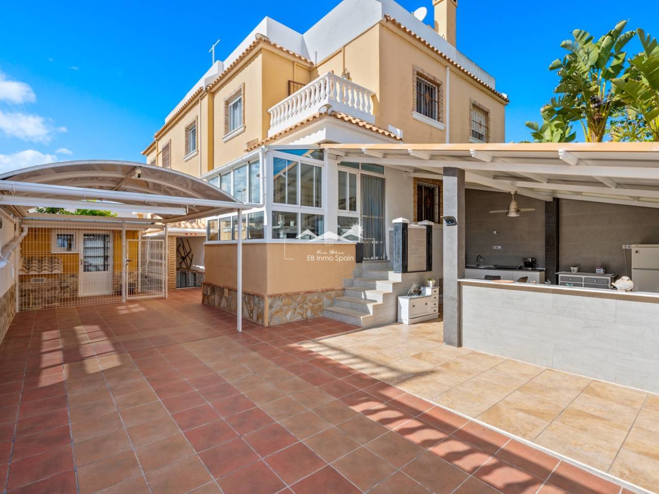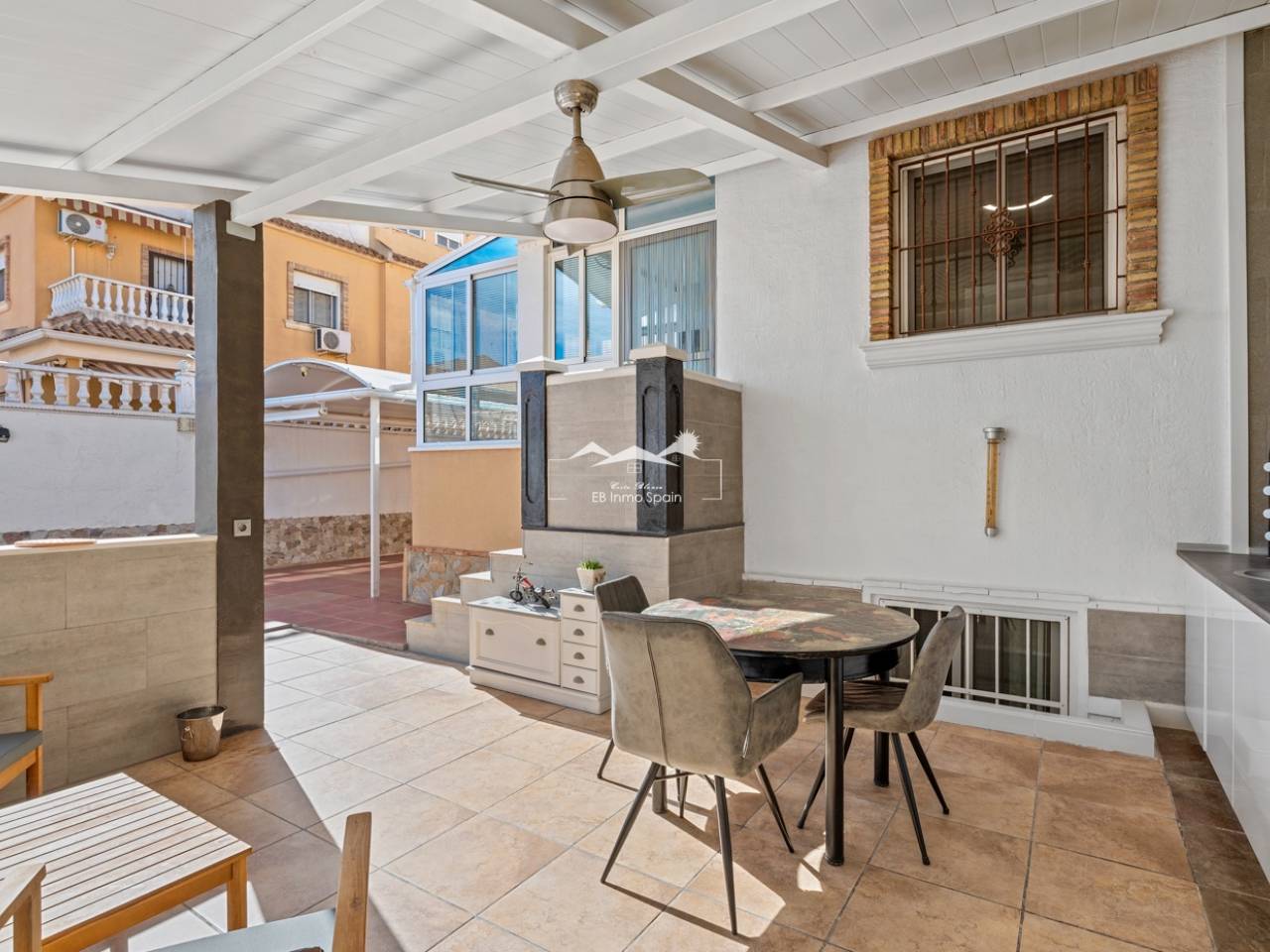 Magnifique maison à deux étages avec solarium, conçue pour le confort, l'espace et le plaisir en toute saison. Dès l'entrée, vous découvrirez une accueillante véranda fermée menant à un salon lumineux. Au rez-de-chaussée, à droite, se trouvent une chambre avec dressing, une salle de bain complète avec douche et une cuisine indépendante entièrement équipée. À l'étage, trois chambres : une grande chambre double avec terrasse privée, climatisation et ventilateur de plafond, et deux chambres simples idéales pour la famille, les invités ou un bureau. De cet étage, vous accédez au superbe solarium, un espace parfait pour se détendre, profiter du soleil toute l'année et se relaxer dans le jacuzzi. La propriété comprend également un sous-sol entièrement rénové avec un salon, une chambre et une salle de bain avec douche, équipé de son propre système de climatisation et de ventilation. Ce sous-sol est idéal pour aménager une suite d'invités, un appartement indépendant ou un espace de loisirs. Toute la maison est équipée de fenêtres à double vitrage, de ventilateurs de plafond et de la climatisation, garantissant un confort optimal en toute saison. Un débarras pratique est situé sur le côté de la maison. L'extérieur est un autre atout majeur : un jardin avec cuisine d'été/d'hiver, idéal pour les réceptions et les repas en plein air. Le terrain permet de garer deux véhicules et la résidence dispose d'une piscine commune. Cette maison polyvalente et entièrement équipée, prête à emménager, est idéale comme résidence principale ou comme investissement.