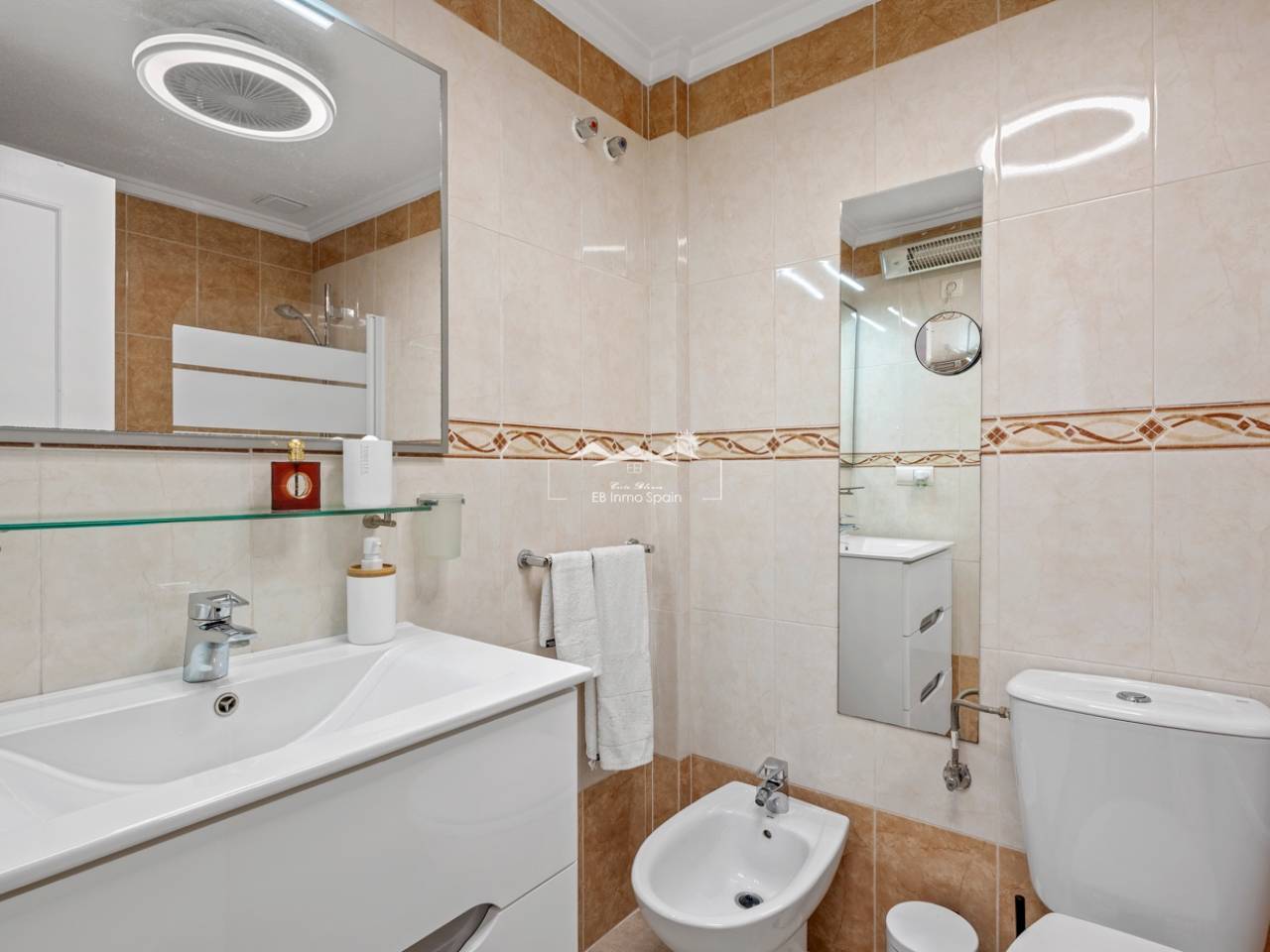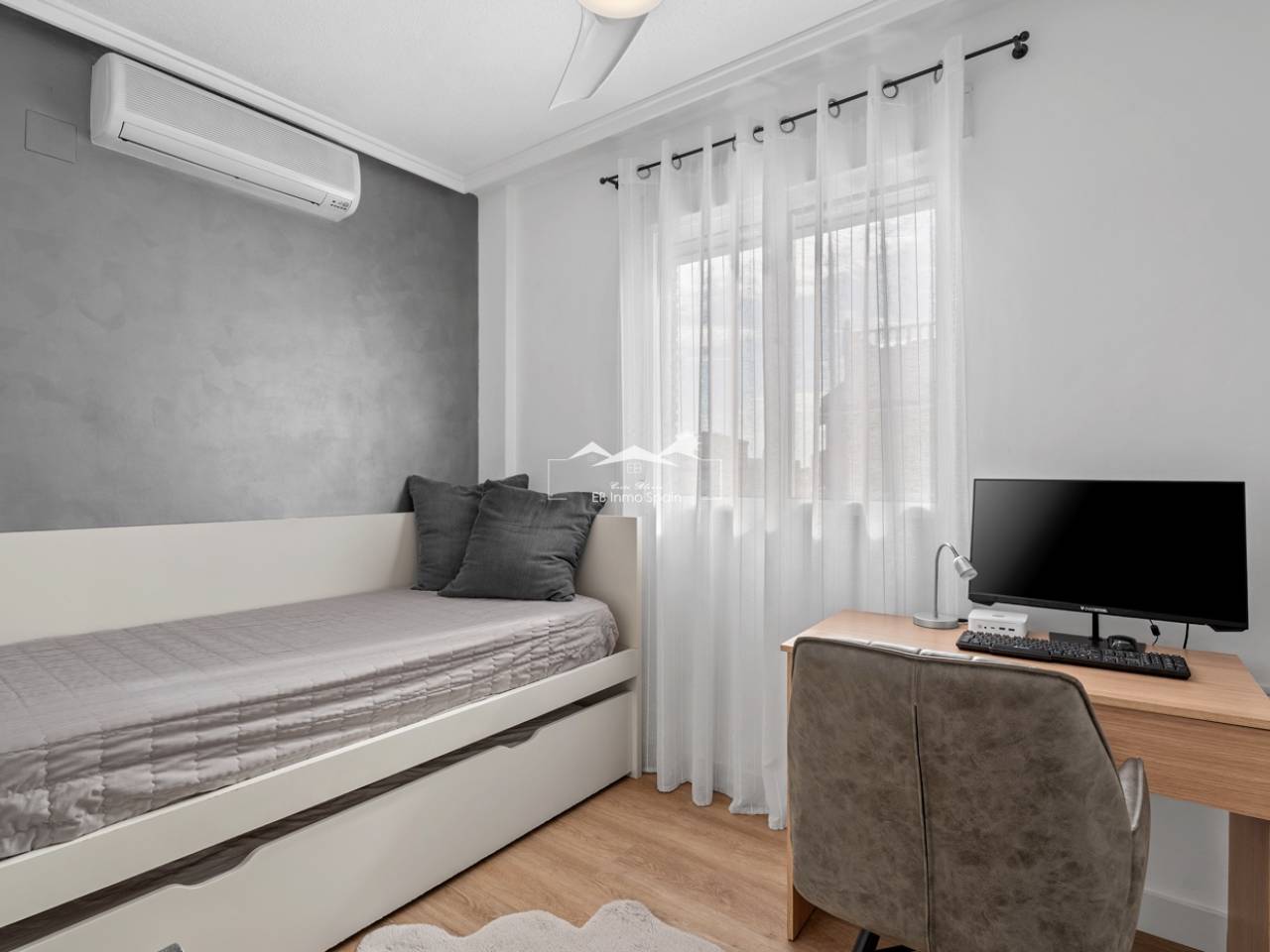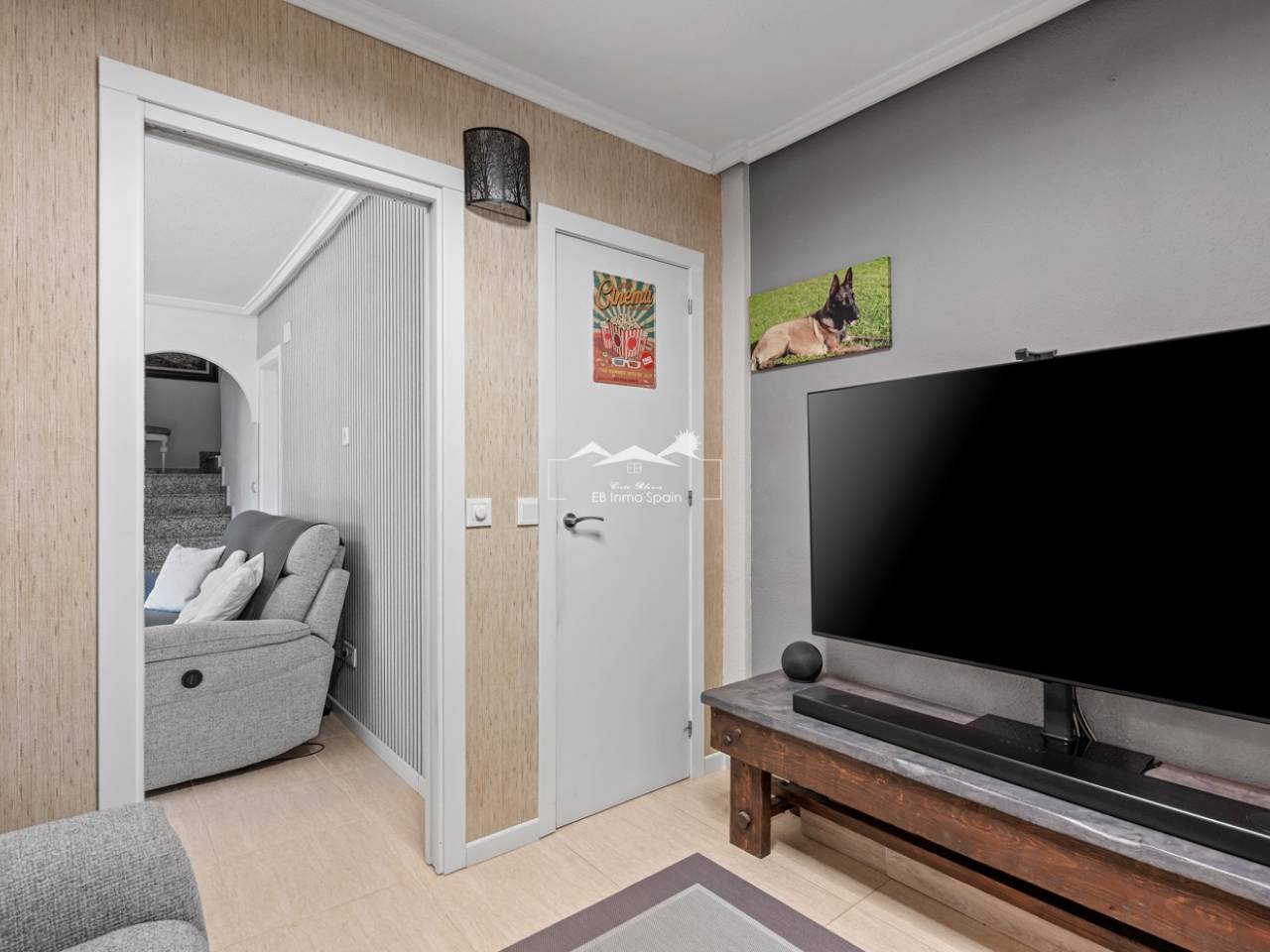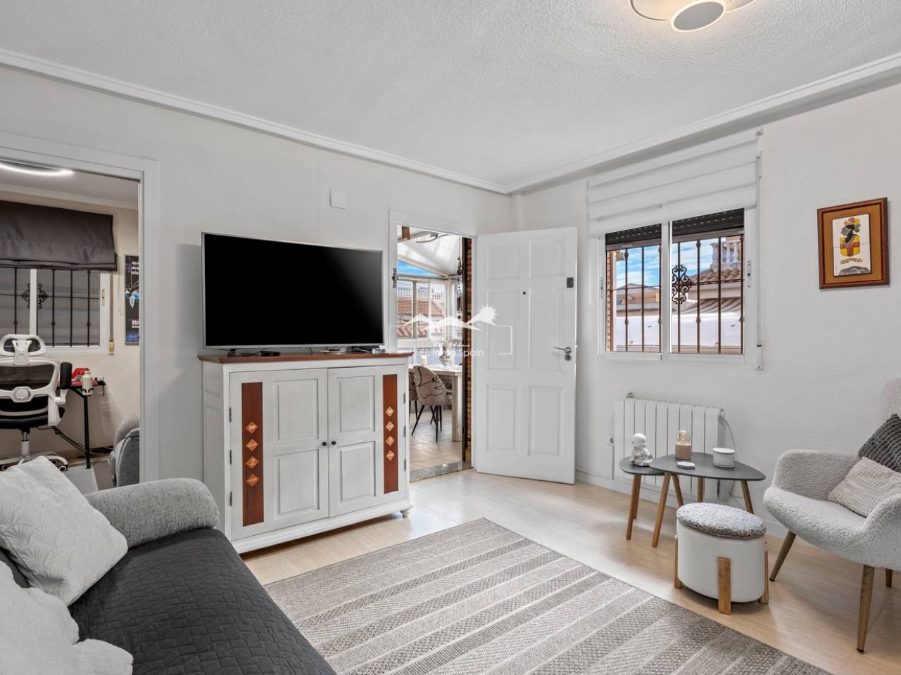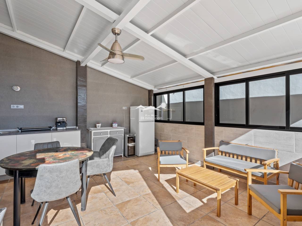 Magnifique maison à deux étages avec solarium, conçue pour le confort, l'espace et le plaisir en toute saison. Dès l'entrée, vous découvrirez une accueillante véranda fermée menant à un salon lumineux. Au rez-de-chaussée, à droite, se trouvent une chambre avec dressing, une salle de bain complète avec douche et une cuisine indépendante entièrement équipée. À l'étage, trois chambres : une grande chambre double avec terrasse privée, climatisation et ventilateur de plafond, et deux chambres simples idéales pour la famille, les invités ou un bureau. De cet étage, vous accédez au superbe solarium, un espace parfait pour se détendre, profiter du soleil toute l'année et se relaxer dans le jacuzzi. La propriété comprend également un sous-sol entièrement rénové avec un salon, une chambre et une salle de bain avec douche, équipé de son propre système de climatisation et de ventilation. Ce sous-sol est idéal pour aménager une suite d'invités, un appartement indépendant ou un espace de loisirs. Toute la maison est équipée de fenêtres à double vitrage, de ventilateurs de plafond et de la climatisation, garantissant un confort optimal en toute saison. Un débarras pratique est situé sur le côté de la maison. L'extérieur est un autre atout majeur : un jardin avec cuisine d'été/d'hiver, idéal pour les réceptions et les repas en plein air. Le terrain permet de garer deux véhicules et la résidence dispose d'une piscine commune. Cette maison polyvalente et entièrement équipée, prête à emménager, est idéale comme résidence principale ou comme investissement.