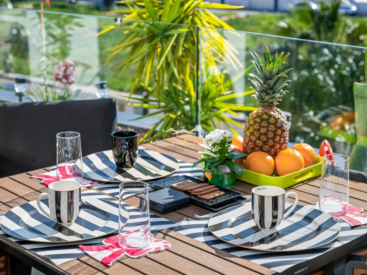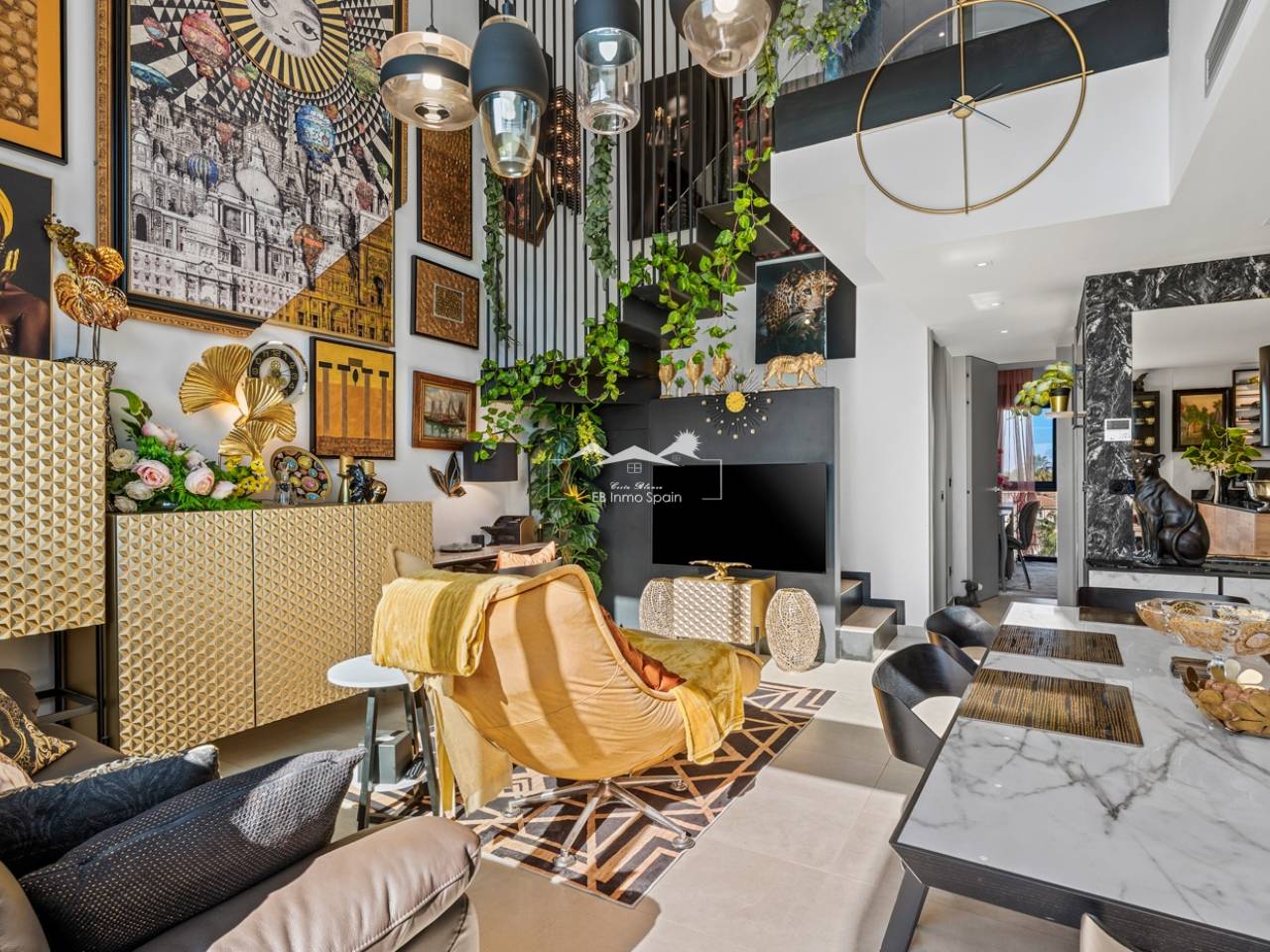 Ce penthouse exclusif sur deux niveaux comprend trois chambres, deux salles de bains, un parking souterrain et un espace commun avec trois piscines. Cet appartement en duplex d'exception est situé au cœur du prestigieux complexe Muna Spa & Resort à Los Dolses. Il offre un cadre de vie unique, avec cinq terrasses et balcons orientés sur deux versants, vous permettant de profiter du soleil et de l'ombre tout au long de la journée. L'appartement se trouve à quelques minutes à pied de toutes les commodités essentielles, notamment restaurants, boutiques et supermarchés. Le centre commercial La Zenia Boulevard, très prisé, avec son large choix de boutiques et de loisirs, est également facilement accessible. De plus, les magnifiques plages et les terrains de golf de la région sont à quelques minutes en voiture. Ce logement, conçu avec soin, dispose d'un agencement ouvert reliant un salon lumineux à une cuisine moderne. Attenant à la cuisine, vous trouverez un local technique pour le lave-linge et le chauffe-eau. L'appartement comprend trois chambres spacieuses, toutes équipées de placards intégrés. La suite parentale et une autre chambre bénéficient d'un accès direct à leur propre terrasse ou balcon, offrant un espace de détente supplémentaire. Les deux salles de bains, au design moderne et aux tons bruns contemporains, comprennent une salle de bains privative. Depuis le salon, une porte donne sur une grande terrasse, idéale pour les repas en plein air. À l'étage, vous découvrirez une terrasse supplémentaire avec cuisine extérieure, barbecue et table à manger, parfaite pour savourer un repas dans un cadre exceptionnel tout en admirant la vue spectaculaire. Le joyau de cette propriété est sans aucun doute sa spacieuse terrasse sur le toit. Vous pourrez vous détendre dans le jacuzzi, vous relaxer dans l'espace lounge ou profiter du soleil sur les transats, tout en admirant la vue panoramique sur la mer et ses environs. Le toit-terrasse est l'endroit idéal pour passer les douces soirées d'été, organiser des dîners ou simplement contempler les étoiles en famille ou entre amis. En tant que résident du Muna Spa & Resort, vous aurez accès à un espace commun exclusif, véritable oasis de tranquillité. Elle comprend deux piscines extérieures pour profiter des beaux jours, une piscine intérieure, un sauna, un terrain de pétanque et une salle de sport, ainsi qu'une salle de réunion disponible pour les événements privés et les réceptions. Cette résidence inclut une place de parking souterrain et un local de rangement sécurisé, garantissant un stationnement pratique et sûr. Ce duplex au sein du Muna Spa & Resort allie élégance, confort et un emplacement exceptionnel.