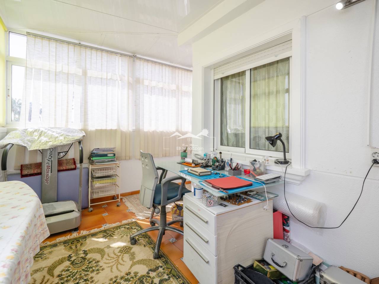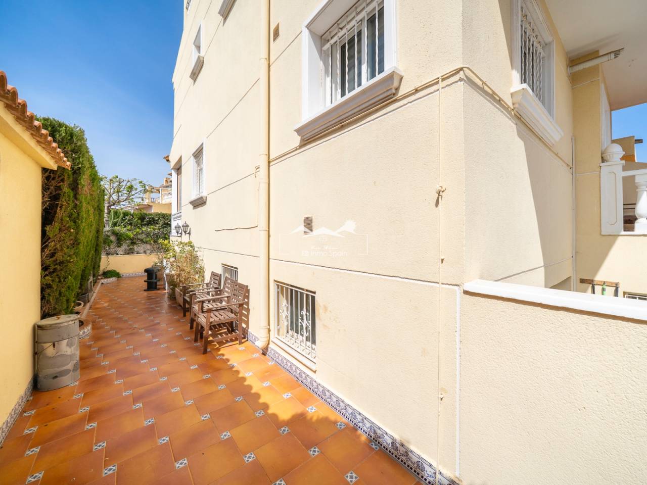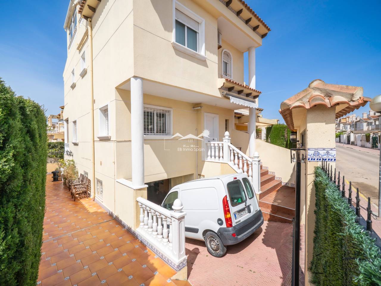 Maison mitoyenne d’angle située dans un quartier résidentiel calme de Guardamar del Segura, idéale pour ceux qui recherchent confort et proximité de la mer. Construite en 1997, elle est en bon état et prête à être habitée. Elle comprend quatre chambres, deux salles de bains et un WC supplémentaire. La cuisine est indépendante et fonctionnelle. Son orientation sud-est permet de profiter d’une belle luminosité. À l’extérieur, on trouve une terrasse couverte et des espaces ouverts avec vue sur des zones vertes. La propriété fait partie d’une résidence avec piscine commune. Elle dispose également de la climatisation, du chauffage central, de placards intégrés, est vendue meublée et comprend un sous-sol avec garage privé.