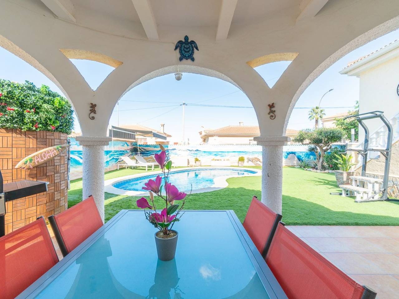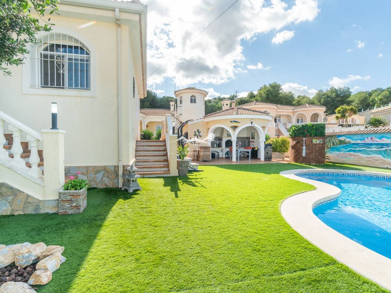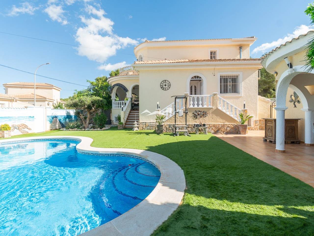 Ubicada en el corazón del codiciado barrio residencial de Las Comunicaciones, esta suntuosa villa de estilo español combina el encanto mediterráneo, el confort moderno y un ambiente relajante. Situada a solo unos minutos del típico pueblo de San Miguel de Salinas, así como de las magníficas playas de Campoamor y Mil Palmeras, ofrece un entorno idílico, entre el mar y el campo, cerca de varios campos de golf de renombre.