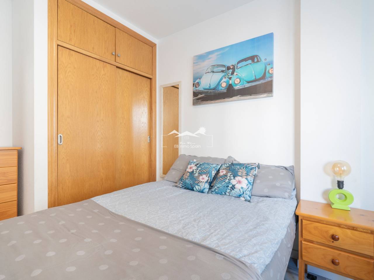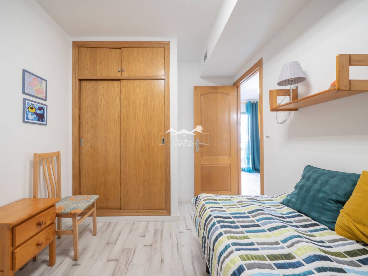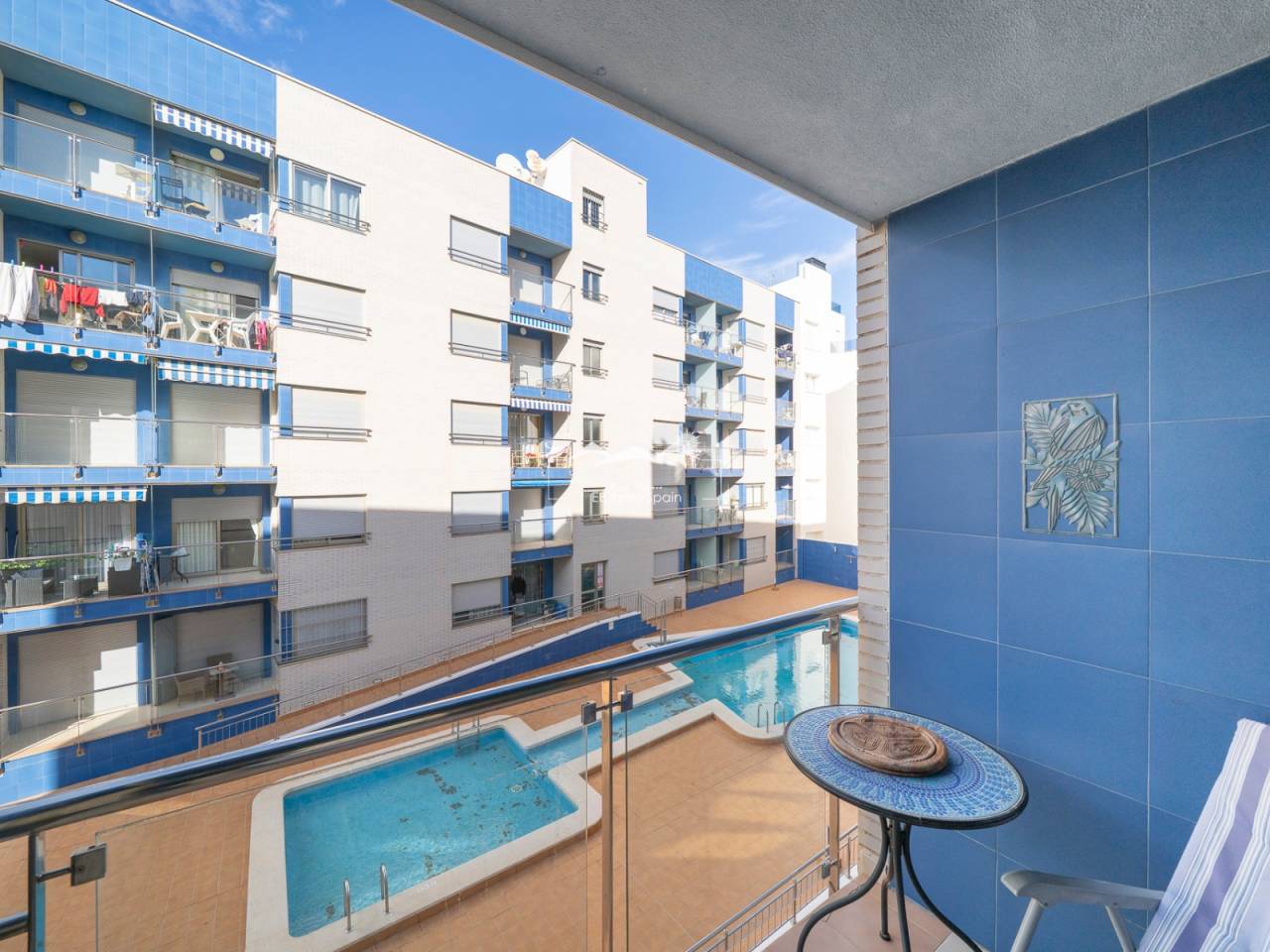 Apartamento de 2 dormitorios ubicado en un complejo residencial en primera línea de Playa de los Locos en Torrevieja. La vivienda consta de dos dormitorios con armarios empotrados, un baño, cocina de concepto abierto, salón-comedor y un lavadero con acceso desde la cocina. Desde el salón se accede a una terraza con vistas a las zonas comunes. El apartamento se encuentra en la tercera planta con ascensor. El complejo residencial dispone de una piscina comunitaria con zona alicatada alrededor para relajarse. También hay un garaje subterráneo en el complejo, donde se incluye una plaza de aparcamiento. El complejo está situado en primera línea de Playa de los Locos en Torrevieja, con acceso inmediato a la playa y a una amplia oferta de servicios.