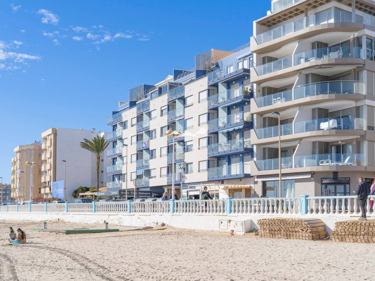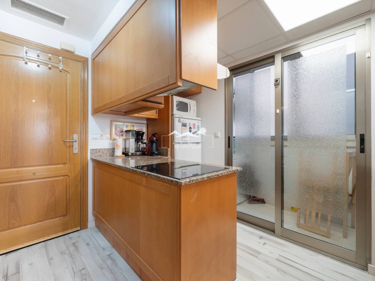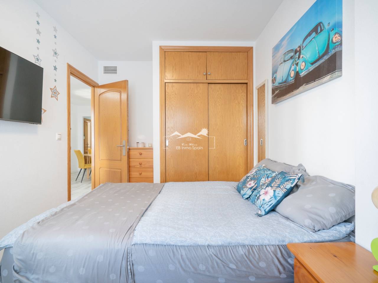 Apartamento de 2 dormitorios ubicado en un complejo residencial en primera línea de Playa de los Locos en Torrevieja. La vivienda consta de dos dormitorios con armarios empotrados, un baño, cocina de concepto abierto, salón-comedor y un lavadero con acceso desde la cocina. Desde el salón se accede a una terraza con vistas a las zonas comunes. El apartamento se encuentra en la tercera planta con ascensor. El complejo residencial dispone de una piscina comunitaria con zona alicatada alrededor para relajarse. También hay un garaje subterráneo en el complejo, donde se incluye una plaza de aparcamiento. El complejo está situado en primera línea de Playa de los Locos en Torrevieja, con acceso inmediato a la playa y a una amplia oferta de servicios.