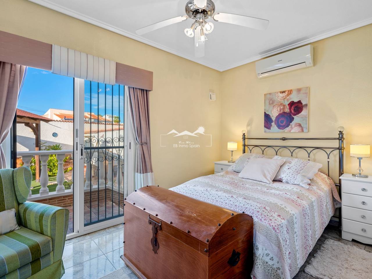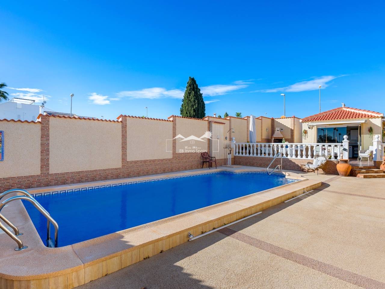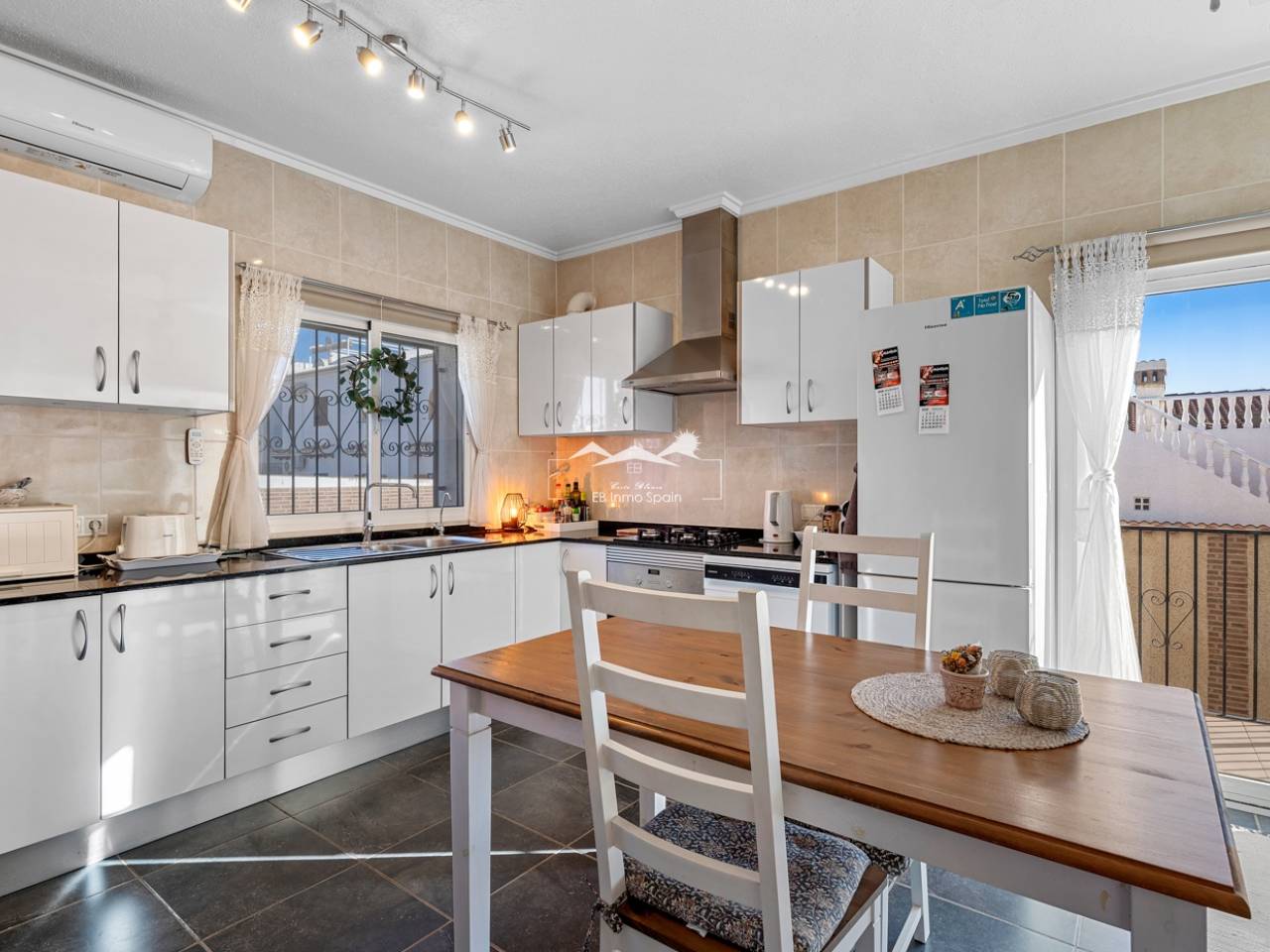 Ubicada en una de las zonas más prestigiosas de Ciudad Quesada, esta preciosa villa reformada ofrece la combinación perfecta de confort moderno, privacidad y estilo de vida mediterráneo al aire libre. Situada sobre una amplia parcela de 587 m² totalmente pavimentada y con fantásticas vistas, la propiedad se presenta en excelente estado y lista para entrar a vivir. La villa cuenta con aproximadamente 150 m² de superficie construida distribuidos en dos plantas. En su interior dispone de cuatro amplios dormitorios con armarios empotrados y tres elegantes baños, ideal tanto para familias como para recibir invitados. La vivienda ofrece una cocina de lujo totalmente equipada, además de una segunda cocina de verano perfecta para el ocio, y un cómodo salón con chimenea y aire acondicionado en toda la casa. En el exterior es donde la vivienda realmente destaca. Disfrute de la piscina privada, ducha exterior, zona de barbacoa y varias terrazas pensadas para disfrutar durante todo el año. Un amplio solárium ofrece sol durante todo el día, mientras que los toldos proporcionan sombra en los meses más cálidos. El jardín privado ajardinado y la zona de aparcamiento dentro de la parcela aportan comodidad y privacidad. Situada a poca distancia a pie de todos los servicios, restaurantes y comodidades, esta villa combina tranquilidad y accesibilidad — ideal como residencia permanente, vivienda vacacional o inversión. Características destacadas: 4 dormitorios | 3 baños Parcela 587 m² | Vivienda 150 m² Piscina privada y ducha exterior Solárium con fantásticas vistas Barbacoa y cocina de verano Chimenea y aire acondicionado Totalmente amueblada y cocina de lujo Aparcamiento privado y trastero Ubicación prestigiosa cerca de servicios Lista para entrar a vivir Suelo radiante en el salón Una elegante vivienda mediterránea donde el confort se une al estilo de vida — visita muy recomendable.
