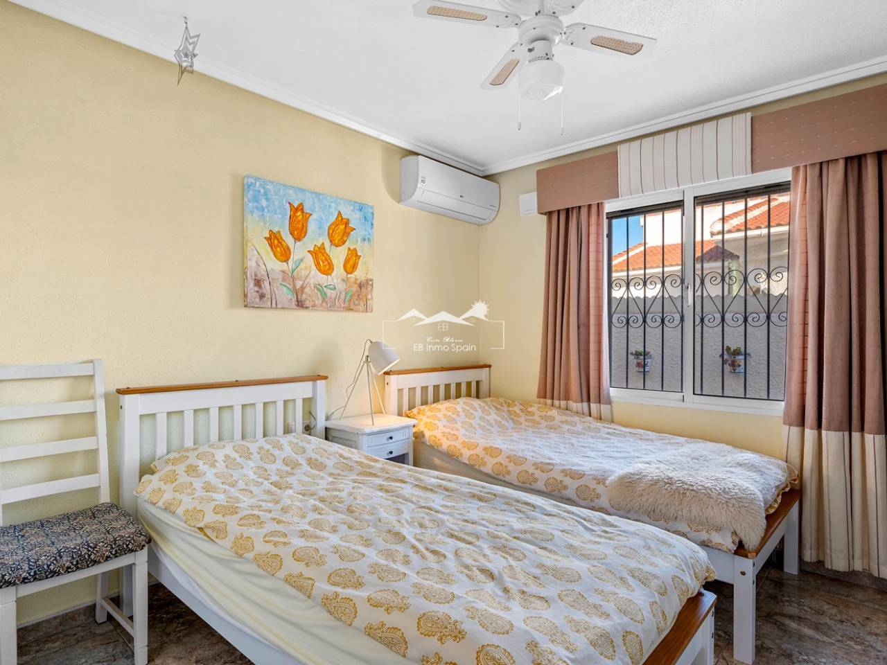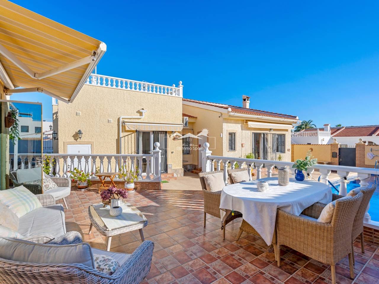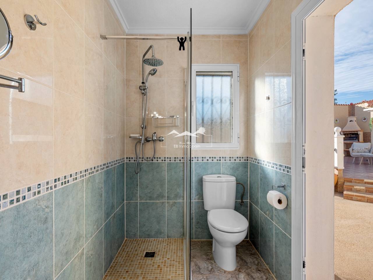 Ubicada en una de las zonas más prestigiosas de Ciudad Quesada, esta preciosa villa reformada ofrece la combinación perfecta de confort moderno, privacidad y estilo de vida mediterráneo al aire libre. Situada sobre una amplia parcela de 587 m² totalmente pavimentada y con fantásticas vistas, la propiedad se presenta en excelente estado y lista para entrar a vivir. La villa cuenta con aproximadamente 150 m² de superficie construida distribuidos en dos plantas. En su interior dispone de cuatro amplios dormitorios con armarios empotrados y tres elegantes baños, ideal tanto para familias como para recibir invitados. La vivienda ofrece una cocina de lujo totalmente equipada, además de una segunda cocina de verano perfecta para el ocio, y un cómodo salón con chimenea y aire acondicionado en toda la casa. En el exterior es donde la vivienda realmente destaca. Disfrute de la piscina privada, ducha exterior, zona de barbacoa y varias terrazas pensadas para disfrutar durante todo el año. Un amplio solárium ofrece sol durante todo el día, mientras que los toldos proporcionan sombra en los meses más cálidos. El jardín privado ajardinado y la zona de aparcamiento dentro de la parcela aportan comodidad y privacidad. Situada a poca distancia a pie de todos los servicios, restaurantes y comodidades, esta villa combina tranquilidad y accesibilidad — ideal como residencia permanente, vivienda vacacional o inversión. Características destacadas: 4 dormitorios | 3 baños Parcela 587 m² | Vivienda 150 m² Piscina privada y ducha exterior Solárium con fantásticas vistas Barbacoa y cocina de verano Chimenea y aire acondicionado Totalmente amueblada y cocina de lujo Aparcamiento privado y trastero Ubicación prestigiosa cerca de servicios Lista para entrar a vivir Suelo radiante en el salón Una elegante vivienda mediterránea donde el confort se une al estilo de vida — visita muy recomendable.