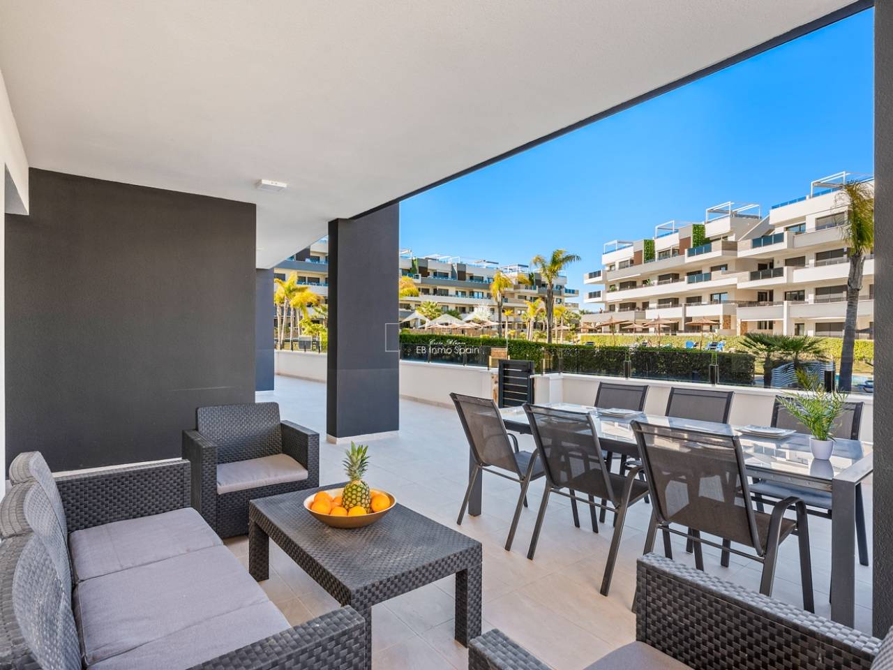 En una de las zonas más demandadas de Playa Flamenca, en Orihuela Costa, presentamos este exclusivo apartamento esquinero en planta baja dentro de un residencial de obra nueva entregado el año pasado. Una oportunidad única para quienes buscan calidad, confort y una ubicación estratégica en la Costa Blanca. Situado a pocos minutos de la playa y rodeado de todos los servicios —restaurantes, bares, farmacias, ocio familiar y el reconocido Centro Comercial La Zenia Boulevard—, esta vivienda combina estilo de vida mediterráneo con una excelente proyección de rentabilidad. El apartamento dispone de 3 dormitorios y 2 baños, con una distribución funcional y acabados de alta calidad. El dormitorio principal cuenta con baño en suite con bañera. El segundo baño es independiente y dispone de ducha. Ambos baños incorporan suelo radiante, aportando un plus de confort durante todo el año. Todos los dormitorios cuentan con armarios empotrados. La cocina está completamente equipada y la vivienda se vende amueblada, excepto objetos de decoración, lo que permite entrar a vivir de inmediato o destinarla al alquiler sin necesidad de inversión adicional. La sensación general es de amplitud, luminosidad y comodidad, ideal tanto como residencia habitual, segunda vivienda o inversión en una de las zonas con mayor demanda internacional de la Costa Blanca. El verdadero valor añadido de esta propiedad es su espectacular terraza esquinera de 115 m². Su ubicación en esquina le proporciona mayor privacidad y amplitud visual. Desde la terraza se disfruta de vistas laterales al mar y acceso directo al jardín y a la piscina comunitaria. Un espacio perfecto para crear diferentes ambientes exteriores: zona chill-out, comedor al aire libre o incluso área de relax personalizada. Encontrar una planta baja con una terraza de estas dimensiones en Playa Flamenca es poco habitual, lo que convierte esta vivienda en una oportunidad especialmente atractiva. La propiedad se ubica en un residencial cerrado de lujo que ofrece completas zonas comunes: Piscina comunitariaZona de barbacoaÁrea infantilGimnasio equipado con maquinaria de última generaciónSaunaAmplias zonas verdes ajardinadas En el precio se incluye además una doble plaza de garaje y un trastero de gran tamaño, aportando comodidad y capacidad de almacenamiento adicional. Esta vivienda reúne todos los elementos clave que actualmente demanda el mercado: obra reciente, gran espacio exterior, servicios premium, cercanía a la playa y a zonas comerciales, y ubicación consolidada con alta demanda tanto para uso propio como para alquiler vacacional o de larga temporada.