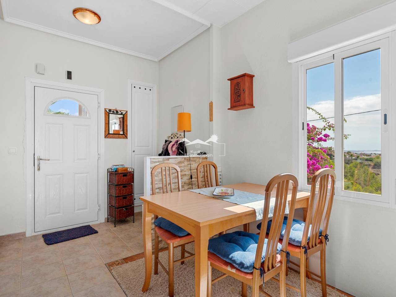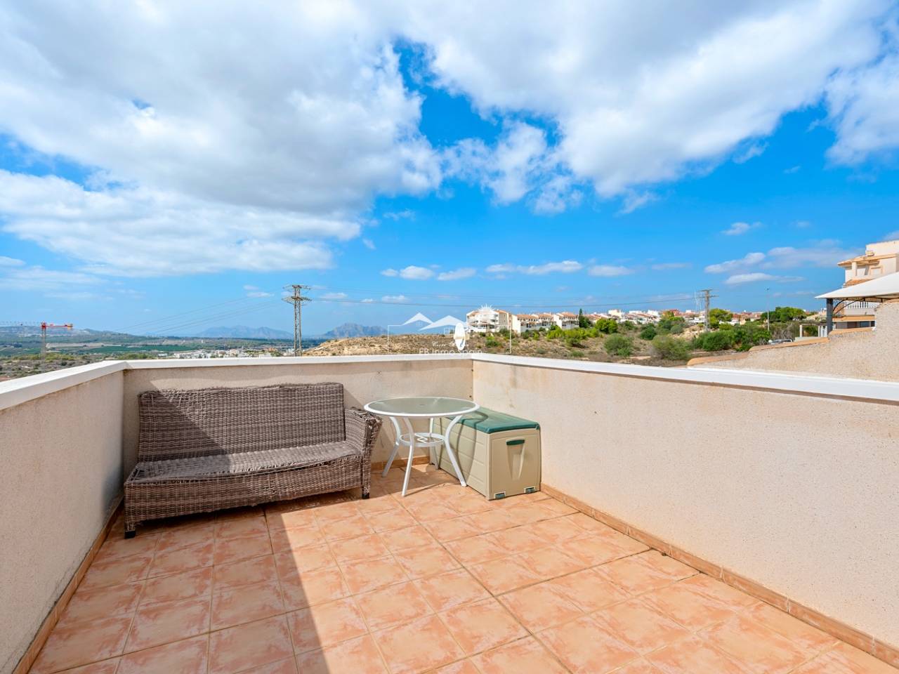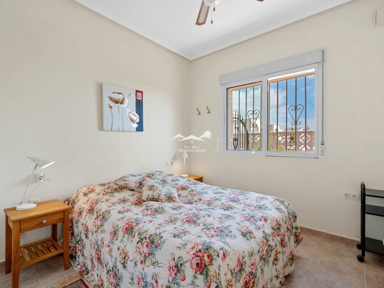 Welcome to this beautifully situated property offering one of the finest outlooks in Ciudad Quesada. With an unbeatable combination of panoramic views, excellent sun exposure, and walking distance to the vibrant town center, this is a home that truly stands out. This charming residence offers two bedrooms on the main level, along with an additional fully furnished bedroom on the lower floor—perfect for guests, extended family, or a private workspace. Step out onto the covered terrace with elegant glass railings, where you can relax comfortably on the outdoor sofa and enjoy the sweeping views all year round. The property is ideally positioned within the community, ensuring both convenience and tranquility. You will also enjoy a private parking space and easy access to the beautiful communal pool area, a perfect spot for cooling off or soaking up the Spanish sun. A rare opportunity to secure a well-located home with exceptional qualities in one of the area’s most desirable communities.