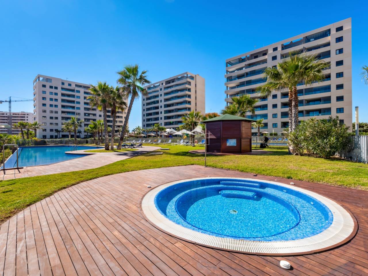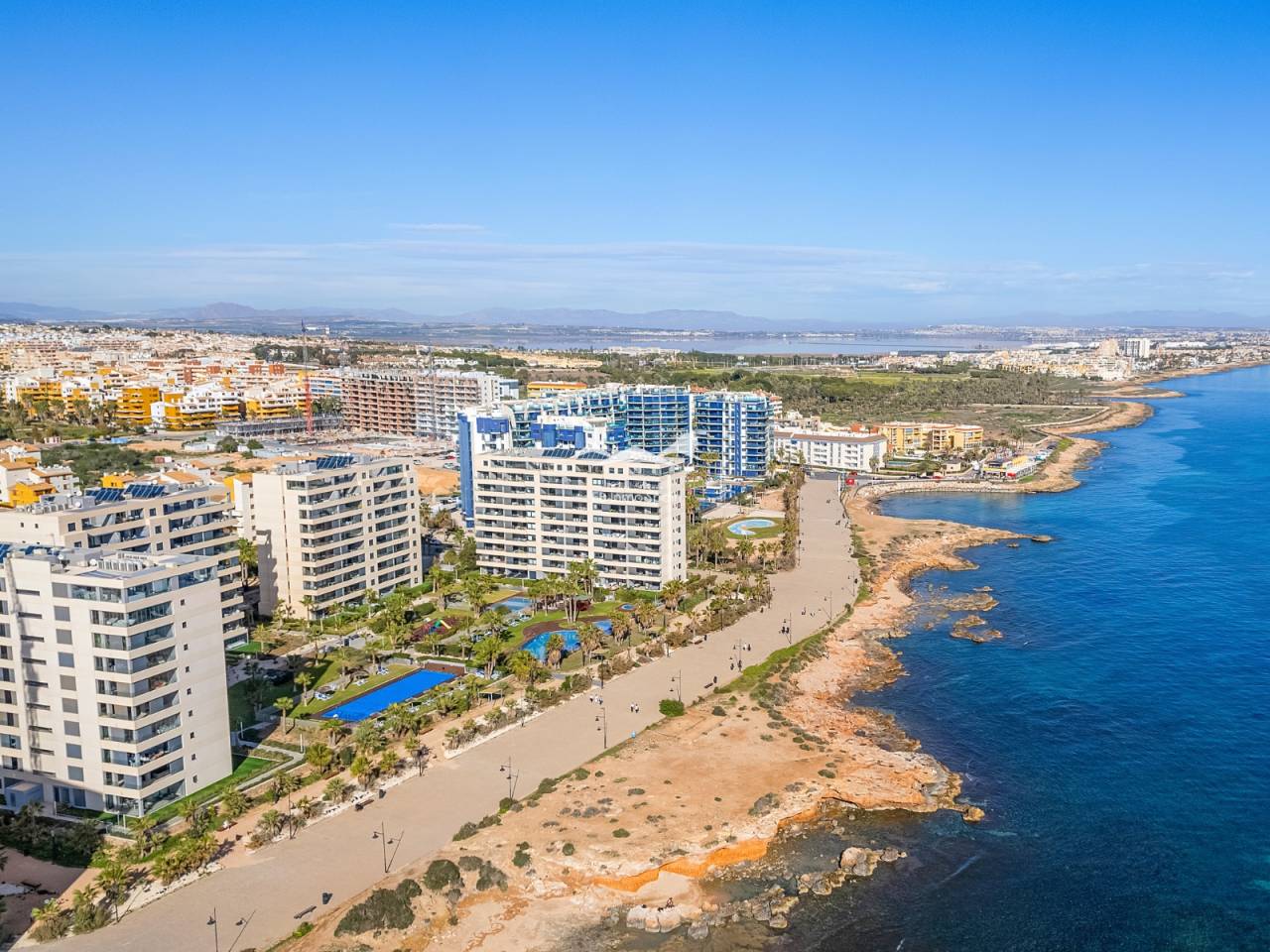 Bienvenue dans cet appartement spacieux et bien conçu de deux chambres et deux salles de bains, situé dans le très recherché Residential Panorama Park, construit en 2020. Offrant un mélange parfait de confort, de style et de commodité, cette maison est idéale pour ceux qui recherchent une retraite côtière moderne. En entrant, vous êtes accueilli par un salon et une salle à manger à aire ouverte, idéaux pour se détendre et se divertir. De grandes portes coulissantes mènent à un vaste balcon orienté au nord, apportant beaucoup de lumière naturelle et offrant une vue imprenable sur la mer. La cuisine est conçue de manière efficace avec des appareils modernes, un grand plan de travail et un accès pratique à la salle à manger, ce qui facilite la préparation et l'accueil des repas. De plus, un deuxième balcon orienté au sud est accessible depuis la cuisine, assurant une atmosphère lumineuse et aérée dans tout l'appartement. La chambre principale sert de retraite privée, avec une salle de bain attenante et un accès direct au grand balcon, parfait pour profiter du café du matin ou des couchers de soleil en soirée. Une deuxième chambre de bonne taille est située à l'extrémité opposée de l'unité, offrant intimité et flexibilité aux invités, aux membres de la famille ou à un bureau à domicile. À côté, une autre salle de bain complète assure commodité et confort. Cette propriété comprend un parking souterrain et un local de rangement privé, ajoutant une praticité supplémentaire à votre expérience de vie. Le complexe Panorama Park dispose de trois piscines, dont une chauffée, offrant un plaisir toute l'année.