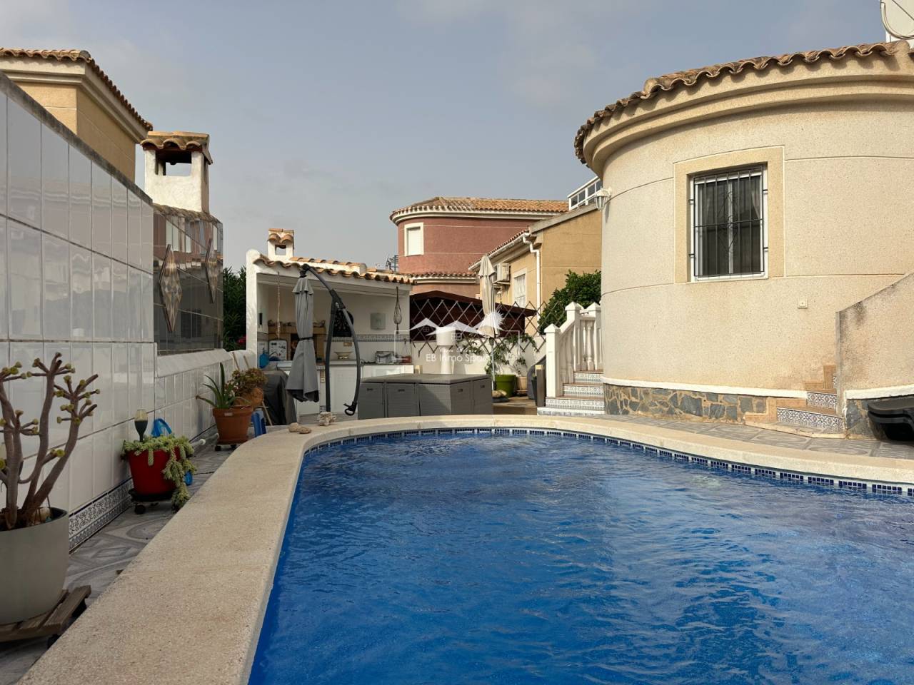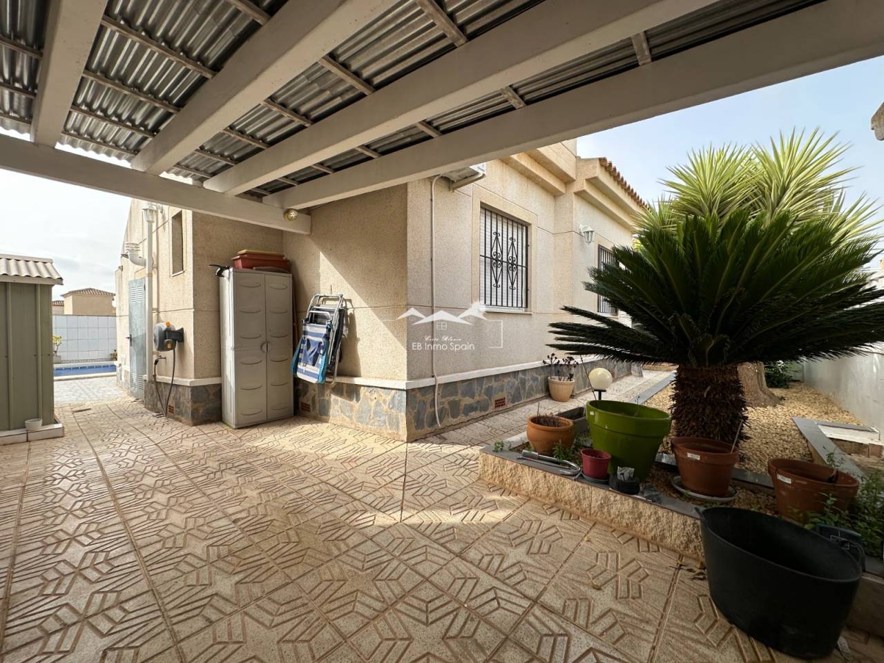OPPORTUNITE A SAISIR ! A Pinar de Campoverde - dans un quartier calme, proche des commerces et services - dans un cadre verdoyant, à 20 minutes des plages. - à 10 minutes de la petite ville de Pilar de la Horada, connue pour son charme et son folklore typiquement espagnols - à 3km du splendide golf du Romero  DESCRIPTION - Véranda pour de profiter de la luminosité hiver comme été - Living - Cuisine équipée - 3 chambres - 1 salle de bain - Sur le solarium, une 4ème chambre a été aménagée - Cuisine extérieure - Buanderie - Espace pour garer son véhicule en site propre - Terrain de 250m2 joliment fleuri - Piscine récemment rénovée - WC supplémentaire à l'extérieur