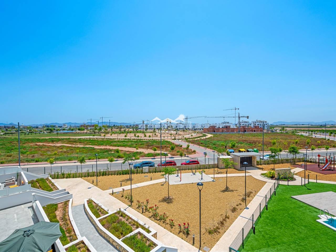Découvrez cet appartement d’angle moderne avec 2 chambres et 2 salles de bains, situé dans le prestigieux Santa Rosalía Lake & Life Resort, une communauté exclusive et en pleine expansion entre la côte et les parcours de golf de la région de Murcie. Orienté sud-ouest, l’appartement est baigné de lumière naturelle et offre une belle vue sur le complexe et la piscine. L’espace de vie ouvert avec cuisine moderne entièrement équipée s’ouvre harmonieusement sur la grande terrasse privée, un lieu idéal pour se détendre au soleil ou admirer le coucher du soleil. La chambre principale dispose de sa propre salle de bains en suite, tandis que la deuxième chambre donne accès à une salle de bains d’amis élégante. Construit avec des matériaux de haute qualité et équipé de la climatisation, l’appartement garantit un confort optimal toute l’année. Cet appartement fait partie du projet Levansur Home Five comprenant 60 logements répartis sur 4 bâtiments, avec 2 piscines communes et une piscine chauffée. Au cœur du resort se trouve un magnifique lac cristallin entouré de clubs de plage, sentiers, activités nautiques, restaurants et espaces de loisirs. Santa Rosalía offre un mode de vie unique où nature, détente et luxe s’unissent parfaitement. Une place de parking souterraine et un débarras sont disponibles en option pour 15 000 euros. Que vous recherchiez une résidence secondaire, une habitation principale ou un investissement à fort potentiel, cet appartement d’angle offre tout, confort, élégance et situation privilégiée dans l’un des complexes les plus recherchés de la Costa Cálida.
