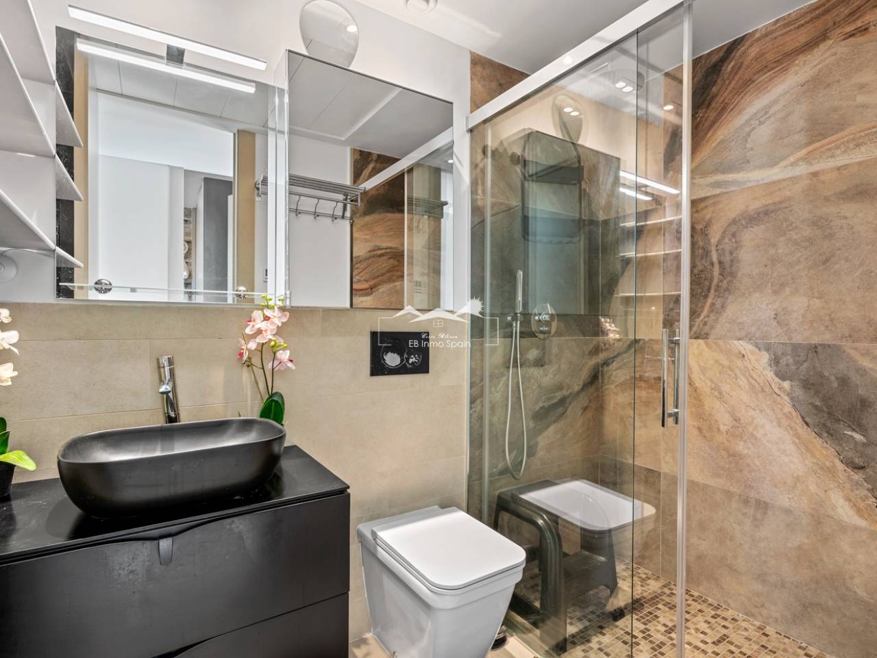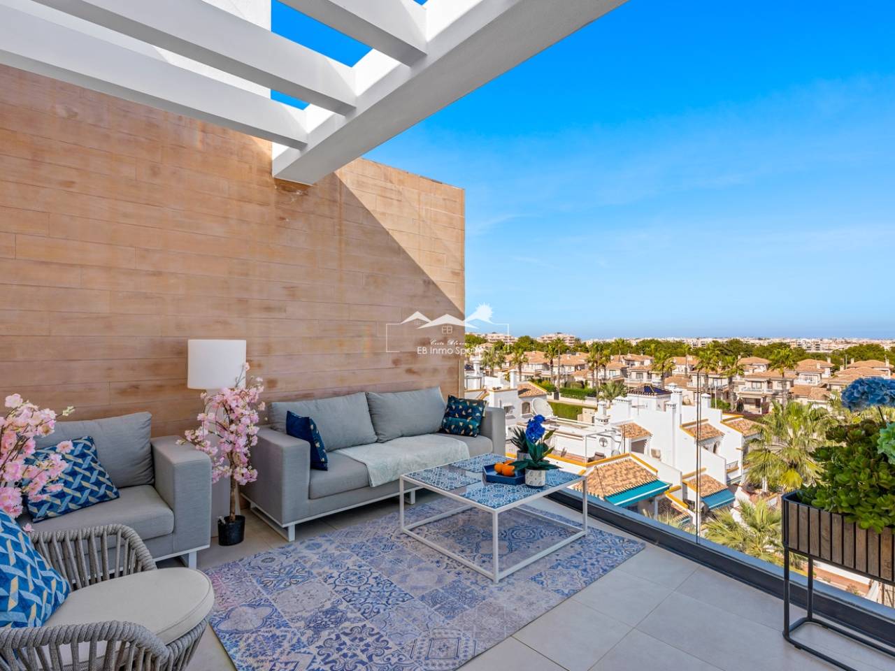 Ce penthouse exclusif sur deux niveaux comprend trois chambres, deux salles de bains, un parking souterrain et un espace commun avec trois piscines. Cet appartement en duplex d'exception est situé au cœur du prestigieux complexe Muna Spa & Resort à Los Dolses. Il offre un cadre de vie unique, avec cinq terrasses et balcons orientés sur deux versants, vous permettant de profiter du soleil et de l'ombre tout au long de la journée. L'appartement se trouve à quelques minutes à pied de toutes les commodités essentielles, notamment restaurants, boutiques et supermarchés. Le centre commercial La Zenia Boulevard, très prisé, avec son large choix de boutiques et de loisirs, est également facilement accessible. De plus, les magnifiques plages et les terrains de golf de la région sont à quelques minutes en voiture. Ce logement, conçu avec soin, dispose d'un agencement ouvert reliant un salon lumineux à une cuisine moderne. Attenant à la cuisine, vous trouverez un local technique pour le lave-linge et le chauffe-eau. L'appartement comprend trois chambres spacieuses, toutes équipées de placards intégrés. La suite parentale et une autre chambre bénéficient d'un accès direct à leur propre terrasse ou balcon, offrant un espace de détente supplémentaire. Les deux salles de bains, au design moderne et aux tons bruns contemporains, comprennent une salle de bains privative. Depuis le salon, une porte donne sur une grande terrasse, idéale pour les repas en plein air. À l'étage, vous découvrirez une terrasse supplémentaire avec cuisine extérieure, barbecue et table à manger, parfaite pour savourer un repas dans un cadre exceptionnel tout en admirant la vue spectaculaire. Le joyau de cette propriété est sans aucun doute sa spacieuse terrasse sur le toit. Vous pourrez vous détendre dans le jacuzzi, vous relaxer dans l'espace lounge ou profiter du soleil sur les transats, tout en admirant la vue panoramique sur la mer et ses environs. Le toit-terrasse est l'endroit idéal pour passer les douces soirées d'été, organiser des dîners ou simplement contempler les étoiles en famille ou entre amis. En tant que résident du Muna Spa & Resort, vous aurez accès à un espace commun exclusif, véritable oasis de tranquillité. Elle comprend deux piscines extérieures pour profiter des beaux jours, une piscine intérieure, un sauna, un terrain de pétanque et une salle de sport, ainsi qu'une salle de réunion disponible pour les événements privés et les réceptions. Cette résidence inclut une place de parking souterrain et un local de rangement sécurisé, garantissant un stationnement pratique et sûr. Ce duplex au sein du Muna Spa & Resort allie élégance, confort et un emplacement exceptionnel.