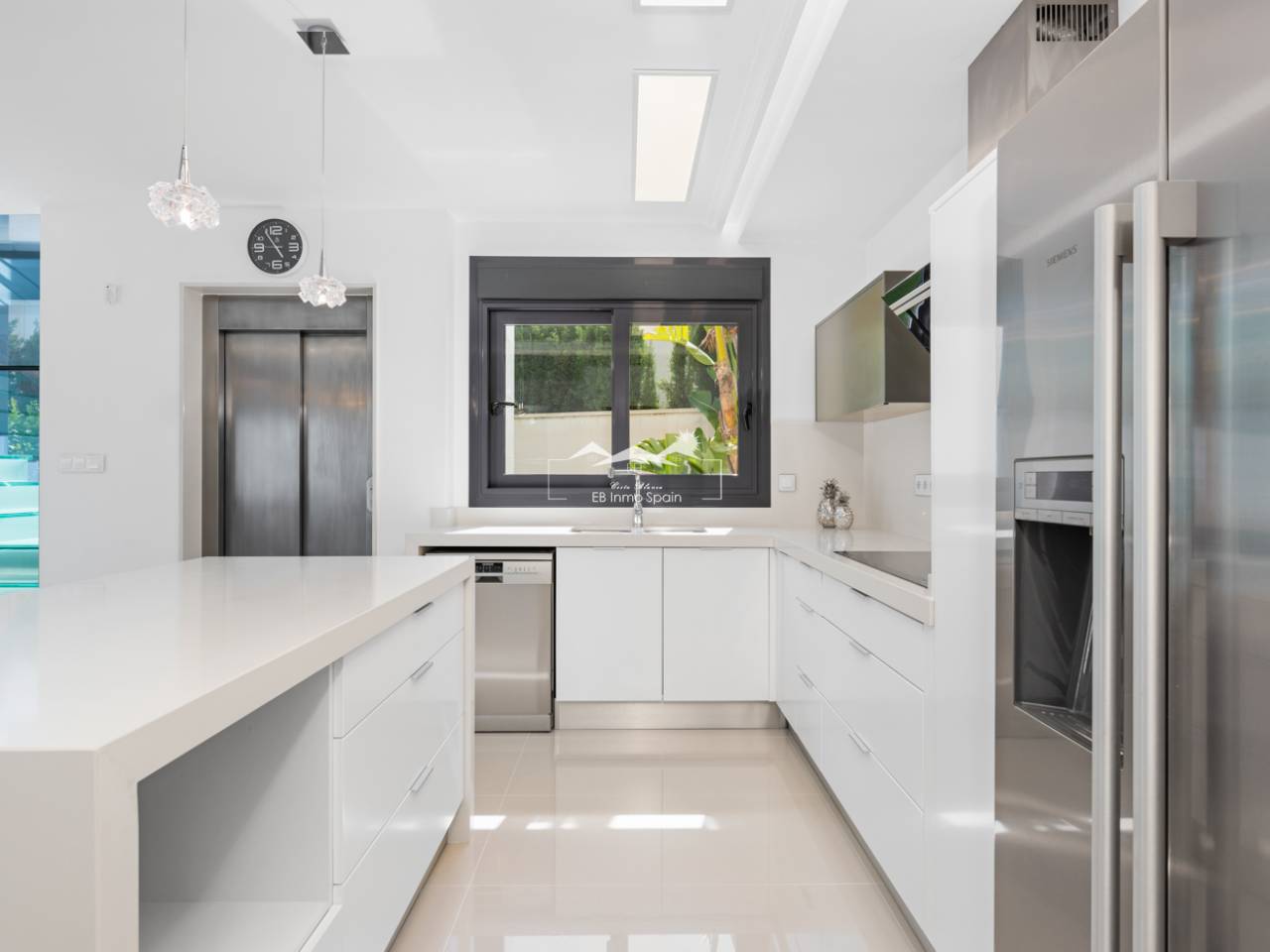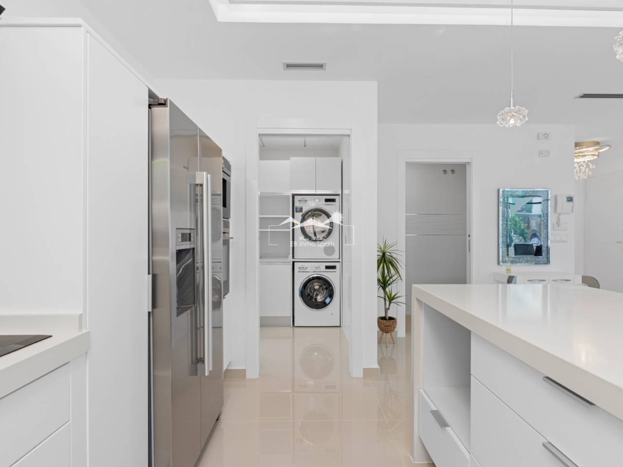 Villa de lujo con 5 habitaciones e increíbles vistas Esta propiedad de lujo de reciente construcción cuenta con un total de 5 habitaciones y 4 baños, distribuidos en dos plantas y sótano, con un práctico ascensor que comunica con todas las plantas de la casa y una preciosa escalera de cristal con luz interior. En la planta sótano encontramos un salón de juegos (con billar y futbolín), un salón para celebraciones con una cocina completa, 2 habitaciones, 2 cuartos de almacenaje y un baño completo. En la planta principal encontramos el salón comedor con cocina de concepto abierto e isla central, la habitación principal con baño en suite, así como el cuarto destinado a lavandería y un aseo. En la primera planta se ubican 2 habitaciones amplias, 2 cuartos de baño y los accesos a los balcones. En la última planta encontramos un increíble solarium de unos 70m2 con impresionantes vistas panorámicas. Equipamiento Dispone de aire condicionado, parking propio para varios vehículos, calefacción central con suelo radiante en toda la casa y se encuentra a la venta amueblada con muebles de diseño y equipada, salvo efectos personales. La vivienda cuenta también con una máquina de pelet para calentar la vivienda, así como placas solares y termo eléctrico. La vivienda incluye ventanas y puertas de seguridad, con llaves con clave, así como un sistema de seguridad con sensores en todas las estancias. El equipamiento es de alta calidad, incluyendo: sofás motorizados, colchones a estrenar, horno a vapor con pirólisis, nevera combo que fabrica hielo normal y picado. ExteriorEn el jardín encontramos una piscina privada con cascada, jacuzzi e hidromasaje. El espacio alrededor de la piscina está muy cuidado, decorado con una gran cantidad de vegetación. Junto a la piscina encontramos una ducha exterior. Por último, también hay aparcamiento para varios coches dentro de la parcela.AreaResidencial Bellavista se sitúa en una de las zonas con mejores vistas de la Costa Blanca. En el término municipal de San Miguel de Salinas, a tan solo 7 kilómetros de las playas de Orihuela, rodeado de campos de golf, el centro comercial más importante de la zona que cuenta con todo tipo de servicios, así como bares, restaurantes, tiendas de ropa, supermercados, etc. Este residencial es ideal para los amantes de la naturaleza y la tranquilidad.