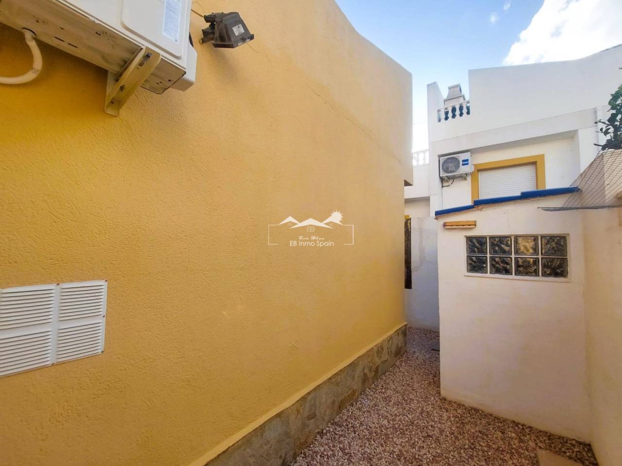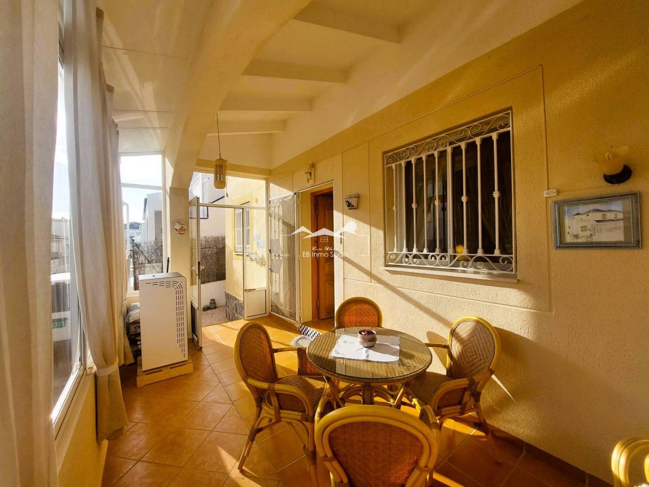 Encantadora casa tipo quad en muy buen estado con 3 dormitorios dobles y 1 dormitorio simple/oficina, amplio salón-comedor, cocina independiente con habitación despensa/lavandería de obra, 2 baños con ducha, trastero interior y exterior, porche acristalado y fantástica terraza-solarium de unos 20m2 con pérgola de aluminio. La vivienda está en una calle residencial cerrada, con posibilidad de aparcar tu coche en la puerta o en la amplia zona de aparcamiento de la urbanización. Se vende amueblada (excepto la cama principal), con electrodomésticos y aire acondicionado recién instalado. Ubicada en la Urbanización Mirador de Los Balcones, con piscina comunitaria, bien cuidada y muy tranquila y con un alto número de residentes todo el año. Rodeada de parques y de todos los servicios necesarios: supermercados, bares, restaurantes, hospital, farmacias. A poco más de 2 kms del mar. No pierdas la oportunidad de comprar una casa para vivir todo el año, para tus vacaciones o como inversión.
