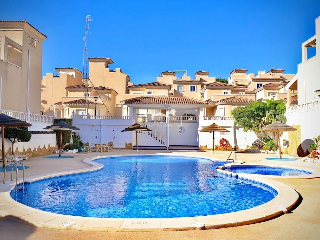 Presentamos este magnífico chalet independiente en esquina, ubicado en un residencial exclusivo de San Miguel de Salinas. Esta vivienda destaca por su diseño amplio y funcional, ideal para disfrutar al máximo del estilo de vida mediterráneo cuenta con una parcela de 215 m2 y una vivienda de 163m2 con 4 dormitorios y 2 baños distribuidos de la siguiente forma;. . • Sótano: Salón-comedor amplio y 2 dormitorios, perfecto para visitas o crear un espacio privado.. . • Planta baja: Espacioso salón-comedor, cocina independiente completamente equipada, 1 baño completo y 1 dormitorio.. . • Planta alta: Dormitorio principal, baño completo y una gran terraza, perfecta para relajarse o disfrutar del sol.. . Características destacadas. . • Exterior: Entrada para coche, zona de barbacoa y un encantador espacio chill out para reuniones o momentos de tranquilidad.. . • Sostenibilidad: Placas solares, lo que garantiza eficiencia energética y un ahorro significativo en el consumo eléctrico.. . • Equipamiento: Se vende amueblada y equipada con aire acondicionado para mayor comodidad.. . Residencial. . El chalet forma parte de un residencial que cuenta con una piscina comunitaria, ideal para refrescarse y socializar con los vecinos.. . Esta vivienda ofrece el equilibrio perfecto entre confort, funcionalidad y sostenibilidad, en un entorno tranquilo y bien comunicado.. .