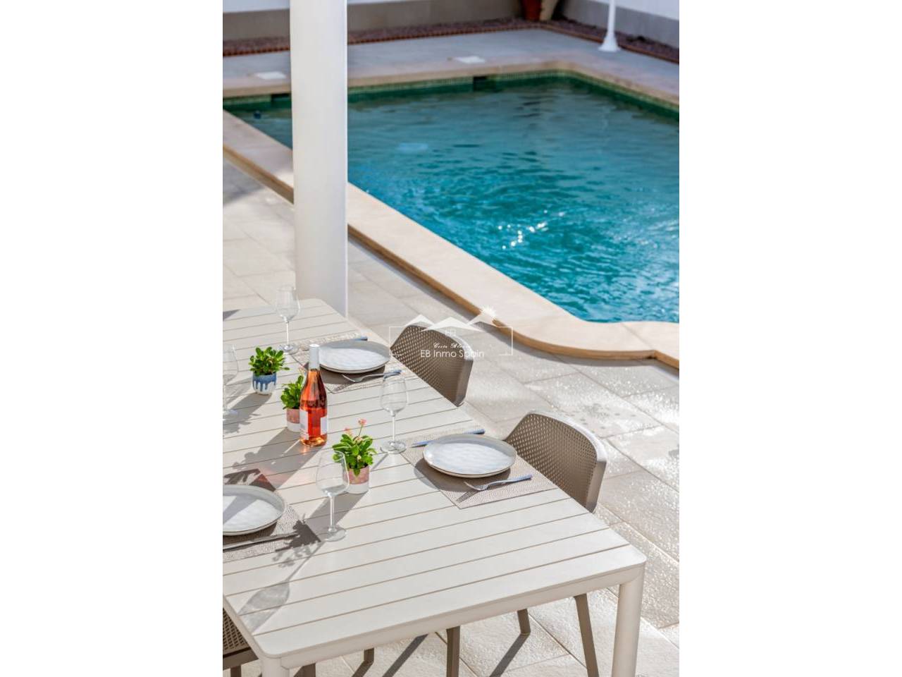 Esta hermosa villa independiente se encuentra en Ciudad Quesada, a solo 5 minutos a pie del centro, ofreciendo comodidad y privacidad. La propiedad se asienta sobre una generosa parcela de 500 m² y cuenta con 146 m² de superficie construida. La casa se distribuye en tres amplios dormitorios y dos baños, el principal con baño en suite. La villa cuenta con un amplio y luminoso salón-comedor con abundante luz natural, creando un ambiente cálido y acogedor. La cocina independiente tiene acceso directo a la parte trasera de la propiedad, donde encontrará una piscina privada, una cocina exterior y acceso al solárium, perfecto para disfrutar del estilo de vida mediterráneo. Desde el lateral de la cocina, también se accede directamente al garaje interior y a un versátil espacio debajo del garaje. Esta zona es ideal para usarse como dormitorio adicional, zona social o de ocio, o como un acogedor estudio/oficina. El exterior rodea toda la casa y cuenta con árboles frutales, proporcionando un ambiente agradable y privado. La propiedad ha sido recientemente renovada y se presenta en perfecto estado, lista para entrar a vivir. Esta propiedad es una excelente oportunidad tanto para vivienda permanente como para inversión en una de las zonas más cotizadas de Ciudad Quesada.