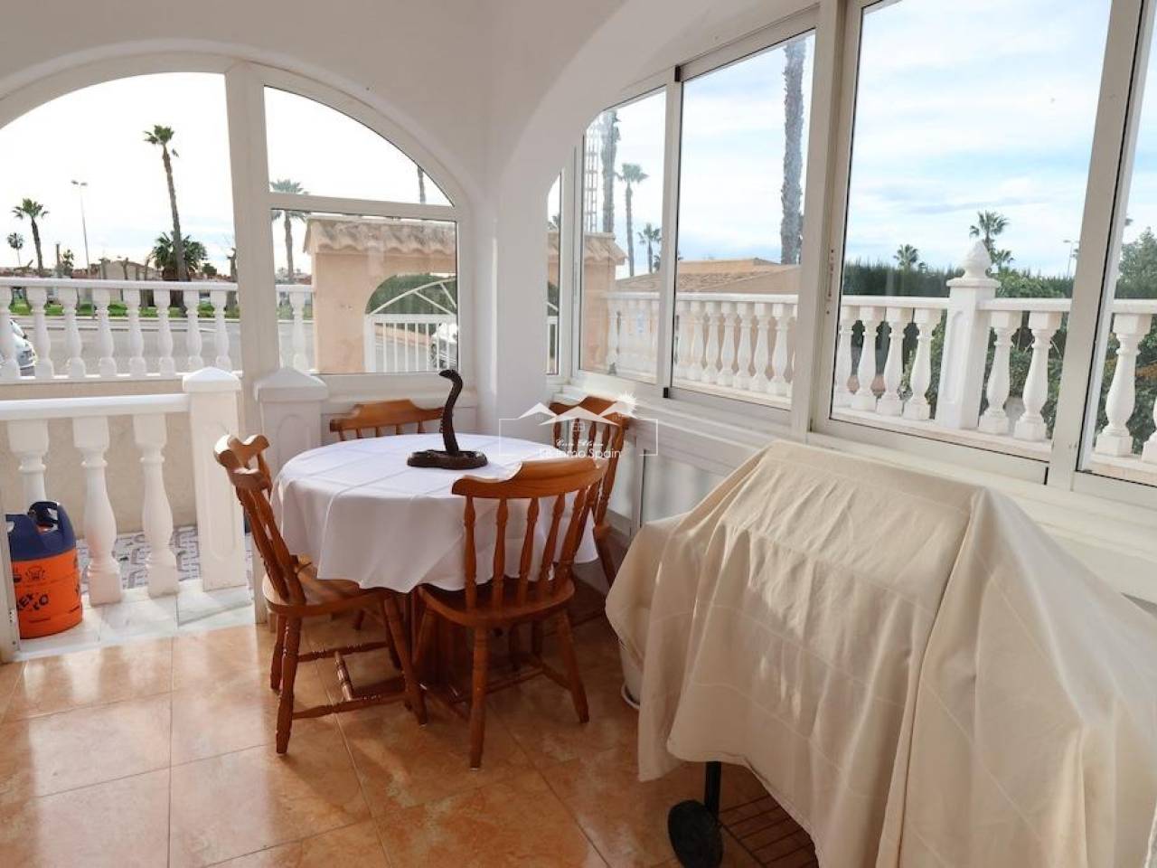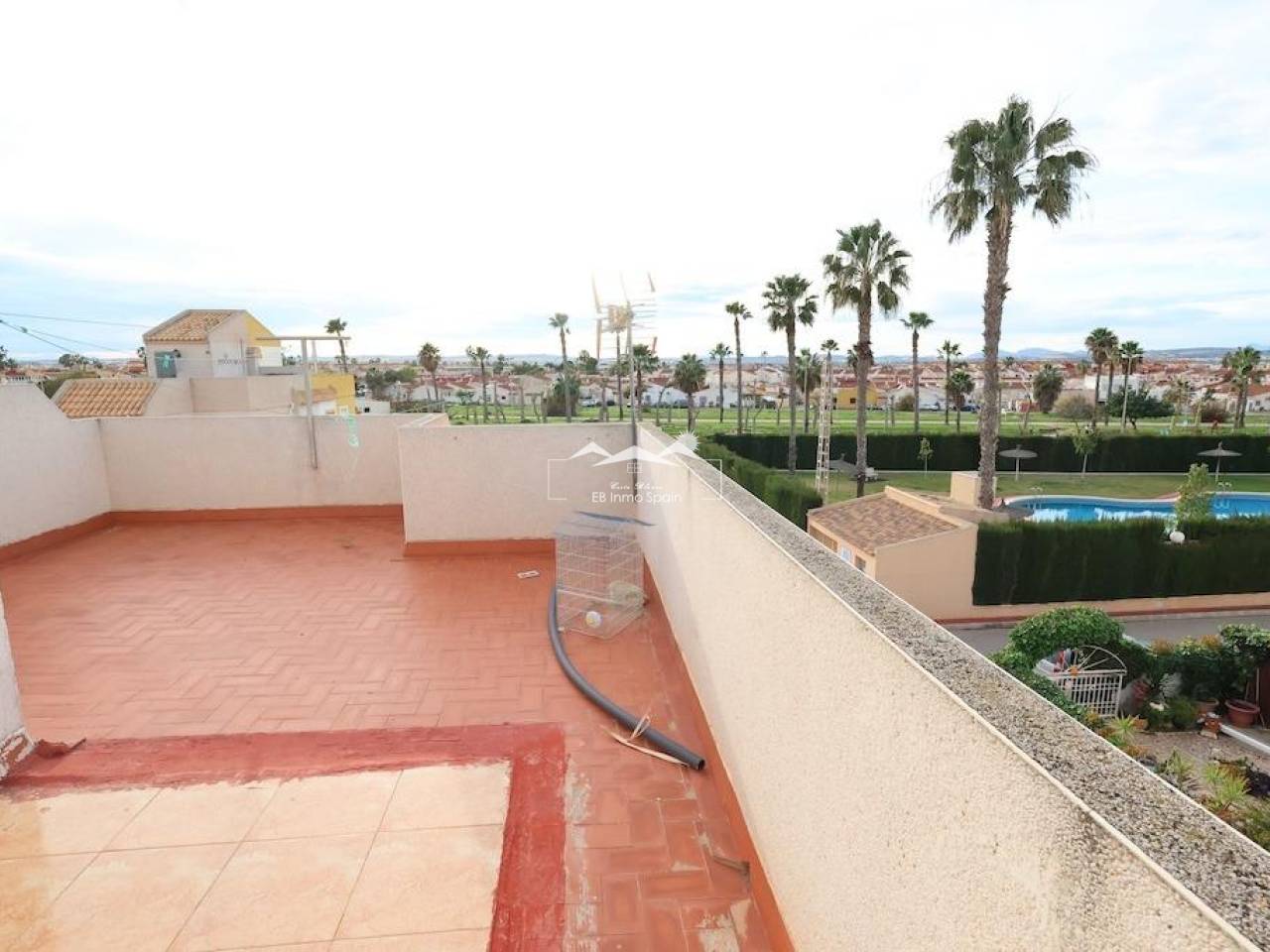 Altos del Limonar Adosado en esquina orientación Sur, con entrada para varios coches, la vivienda dispone de 90 m2 en dos plantas mas solarium de 26 m2, cuenta con 3 dormitorios (todos en la planta de arriba), 2 baños, cocina independiente y un amplio salñon comedor, desde el solarium se ve la piscina comunitaria y las zonas verdes, la vivienda se vende amueblada y con aire acondicionado.