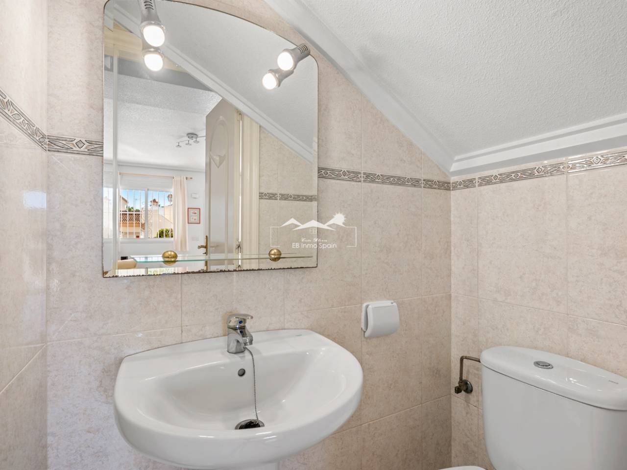 Descubre este encantador adosado en el residencial Las Palmeras, situado en Ciudad Quesada, una de las zonas más demandadas por su tranquilidad y cercanía a todos los servicios. La vivienda se distribuye en dos plantas y cuenta con dos fantásticas terrazas que permiten disfrutar del sol durante todo el día: la terraza delantera recibe el sol de la mañana, perfecta para empezar el día al aire libre, mientras que la terraza trasera ofrece sol por la tarde, ideal para relajarse o disfrutar de reuniones con familia y amigos. En la planta principal encontramos un amplio y luminoso salón, un aseo de cortesía y una cocina independiente con acceso directo a la terraza trasera, donde además hay un espacioso trastero con zona de lavandería. En la planta superior se encuentran dos dormitorios, destacando el dormitorio principal de matrimonio con acceso a una agradable terraza privada. En esta planta también se ubica el baño principal. La vivienda forma parte de una cuidada comunidad que dispone de piscina comunitaria y una plaza de aparcamiento asignada por vivienda. Su excelente ubicación permite disfrutar de la tranquilidad sin renunciar a la comodidad: a solo 10 minutos de la playa y a 5 minutos de supermercados, restaurantes y todo tipo de servicios. Una oportunidad ideal tanto como vivienda habitual o casa de vacaciones