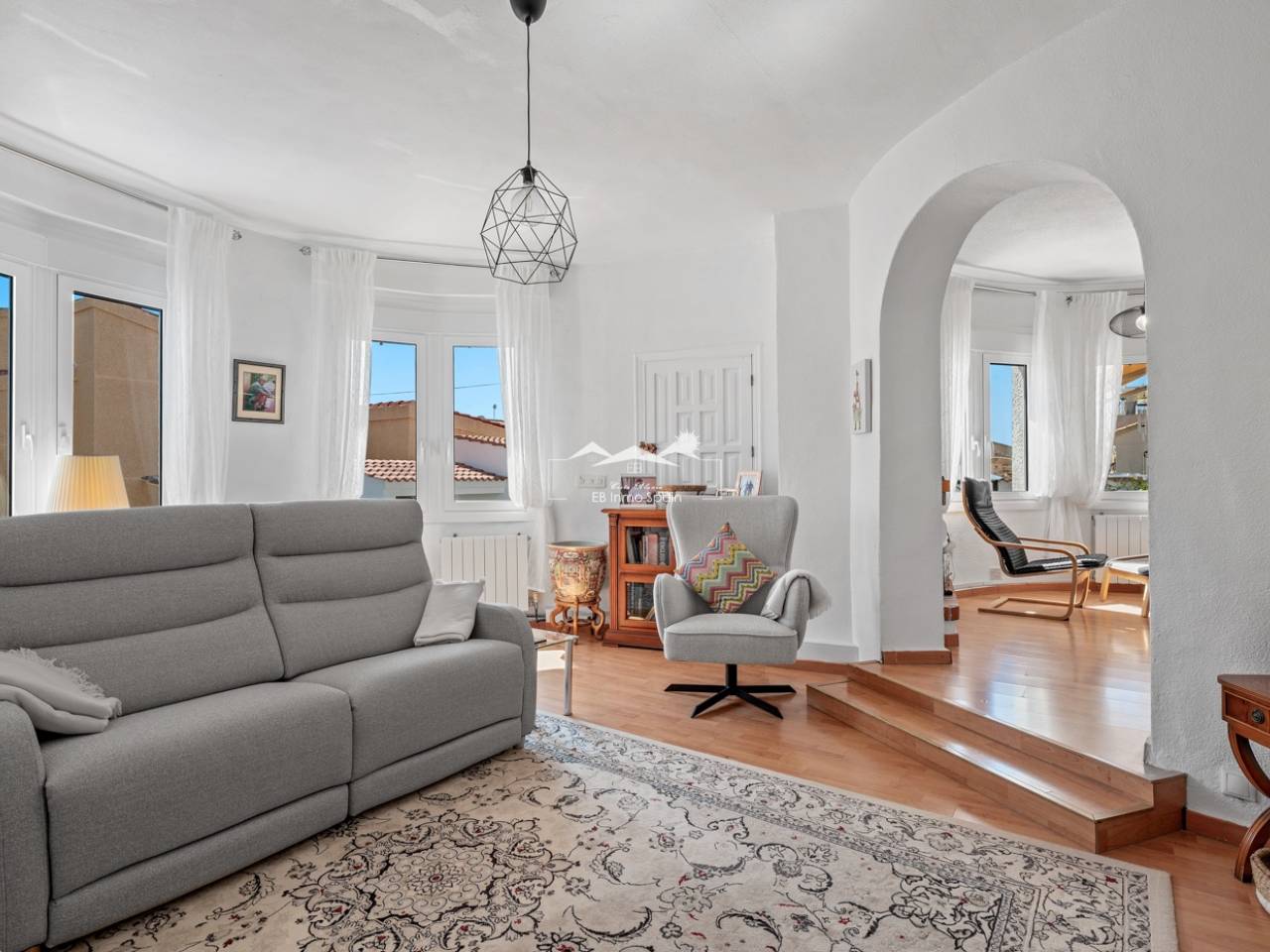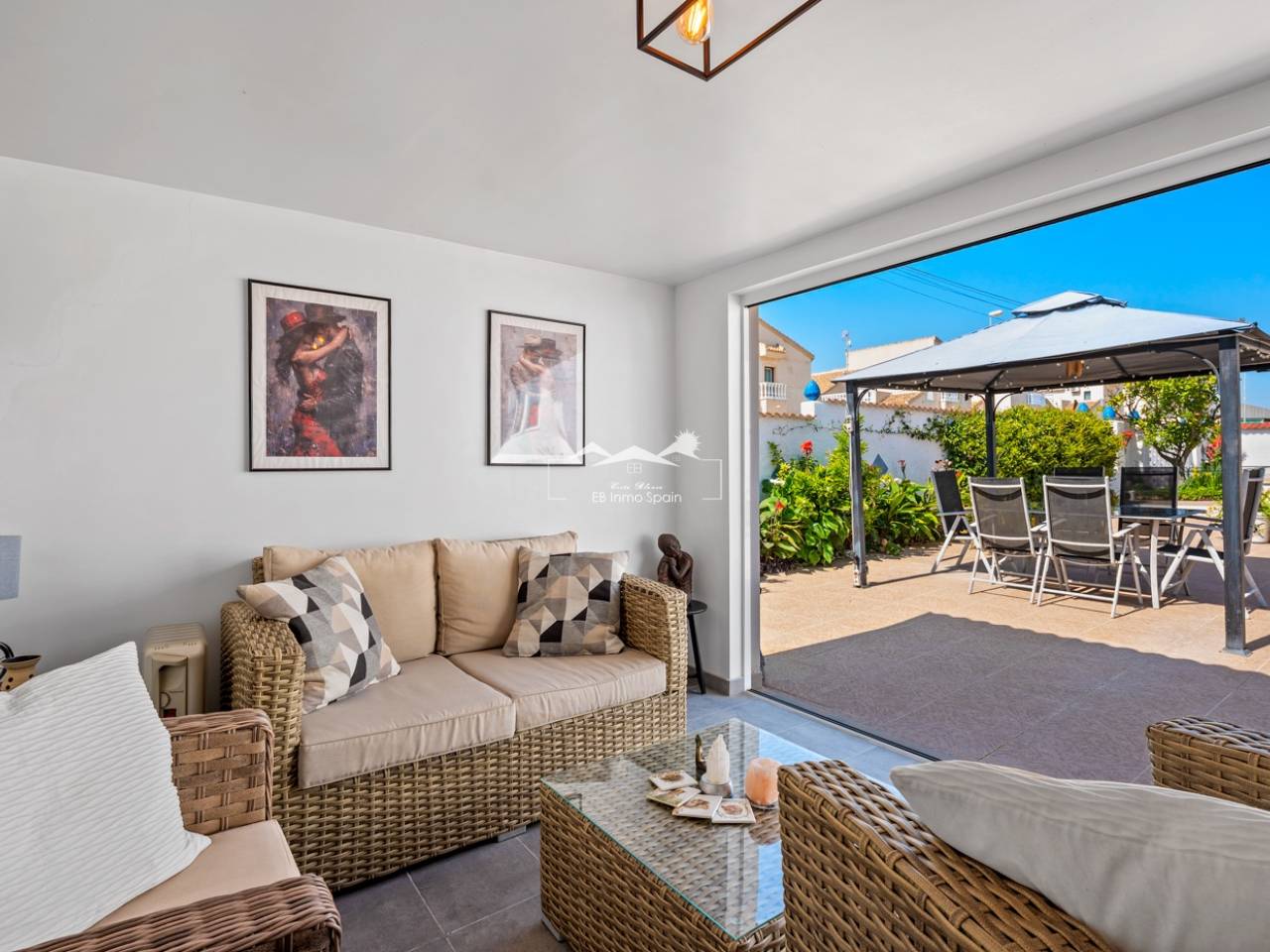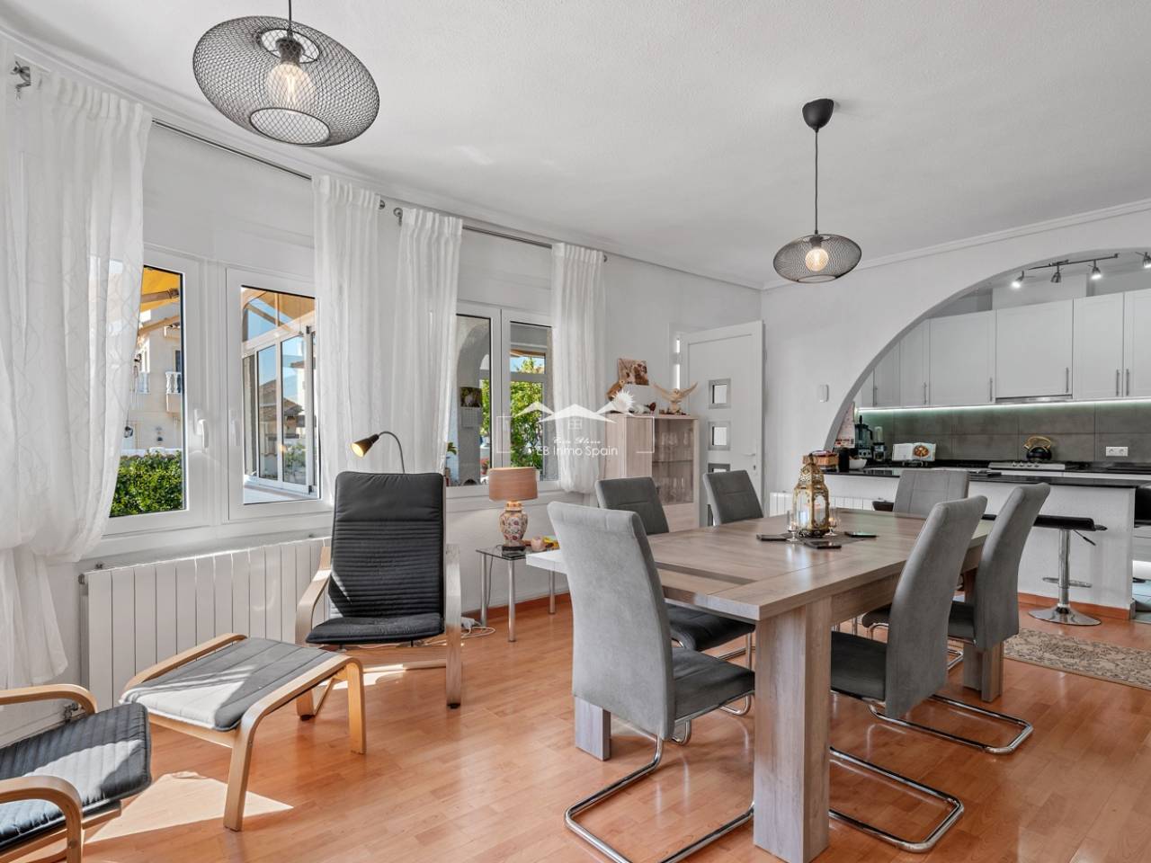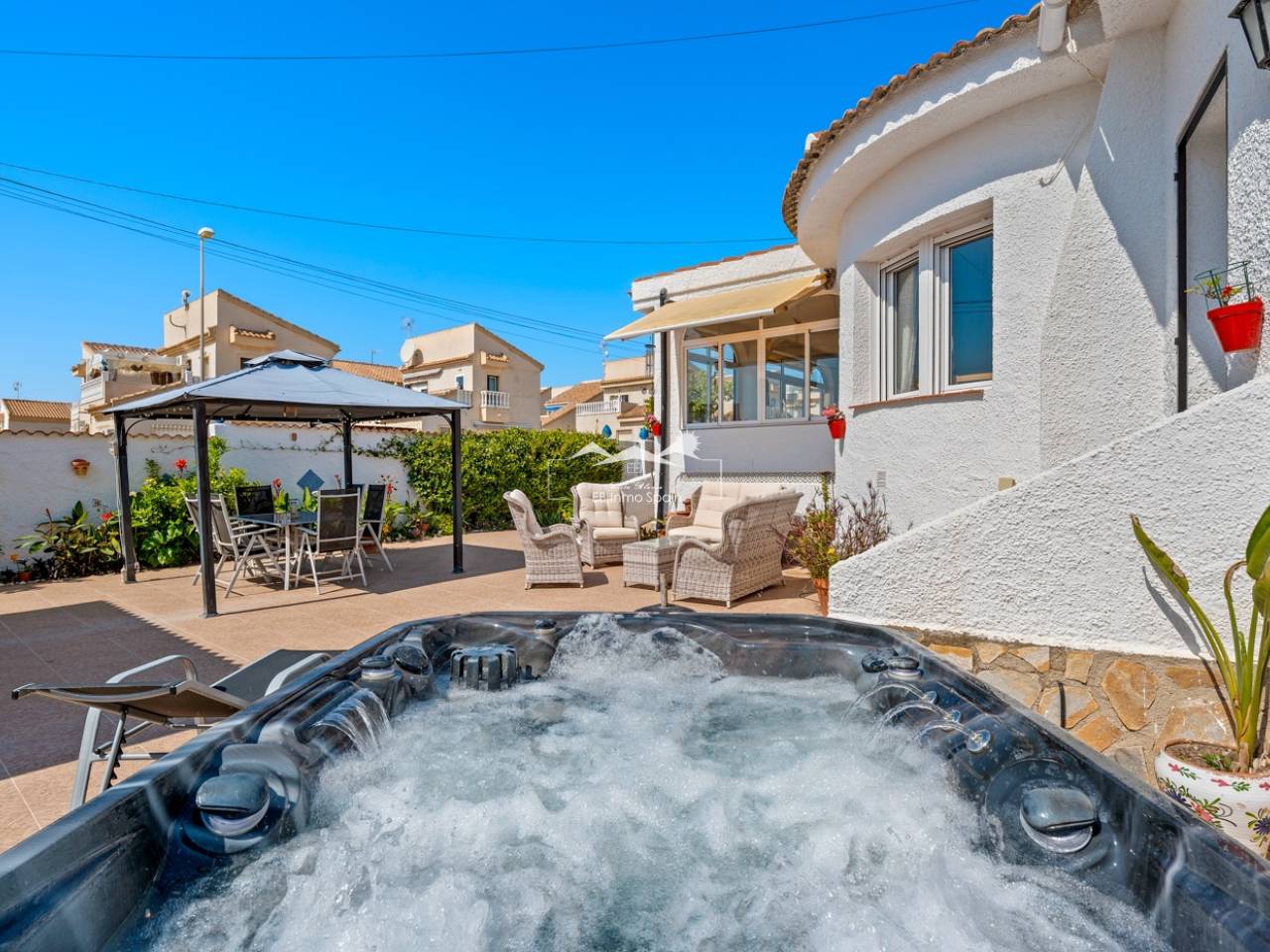 Esta encantadora casa se asienta sobre una amplia parcela de 500 m², ofreciendo un entorno ideal para la tranquilidad y el confort. La casa principal, con 104 m² de superficie habitable, está diseñada para aprovechar al máximo cada metro cuadrado, combinando funcionalidad y estilo. Cuenta con dos acogedores dormitorios y dos baños completos, uno de ellos en suite en el dormitorio principal, lo que proporciona mayor privacidad y comodidad. La casa dispone de una amplia y moderna cocina, perfectamente integrada con un espacioso comedor, creando un ambiente ideal para reuniones con amigos y familiares. Junto al comedor se encuentra una luminosa sala de estar, perfecta para relajarse y disfrutar del día a día. La propiedad también incluye un invernadero, que añade espacio habitable adicional lleno de luz natural. Sobre la casa principal se encuentra un práctico apartamento de invitados con acceso independiente desde el exterior. Este espacio diáfano incluye un dormitorio y una cocina en una sola habitación, así como un baño completo con ducha, lo que lo convierte en una opción perfecta para invitados o incluso para uso independiente. La propiedad cuenta con un hermoso jardín, una casita de verano, una zona de barbacoa, una preciosa piscina y un jacuzzi, ideales para disfrutar del agradable clima durante todo el año. También incluye un garaje cerrado y espacio adicional dentro de la parcela para aparcar varios vehículos. En cuanto a las comodidades, la casa principal cuenta con calefacción central de gasoil, radiadores en toda la vivienda y aire acondicionado en varias habitaciones, lo que garantiza confort durante todo el año. Además, dispone de una rampa de acceso para sillas de ruedas en la entrada principal. Esta es una propiedad muy bien cuidada, lista para entrar a vivir y disfrutar desde el primer día.